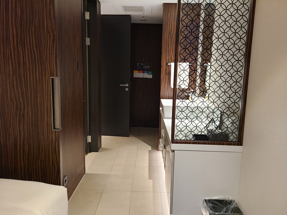 객실 출입문을 열고 들어오자마자 옷장, 변기, 샤워기, 세면대가 있고 침실이 나옵니다.