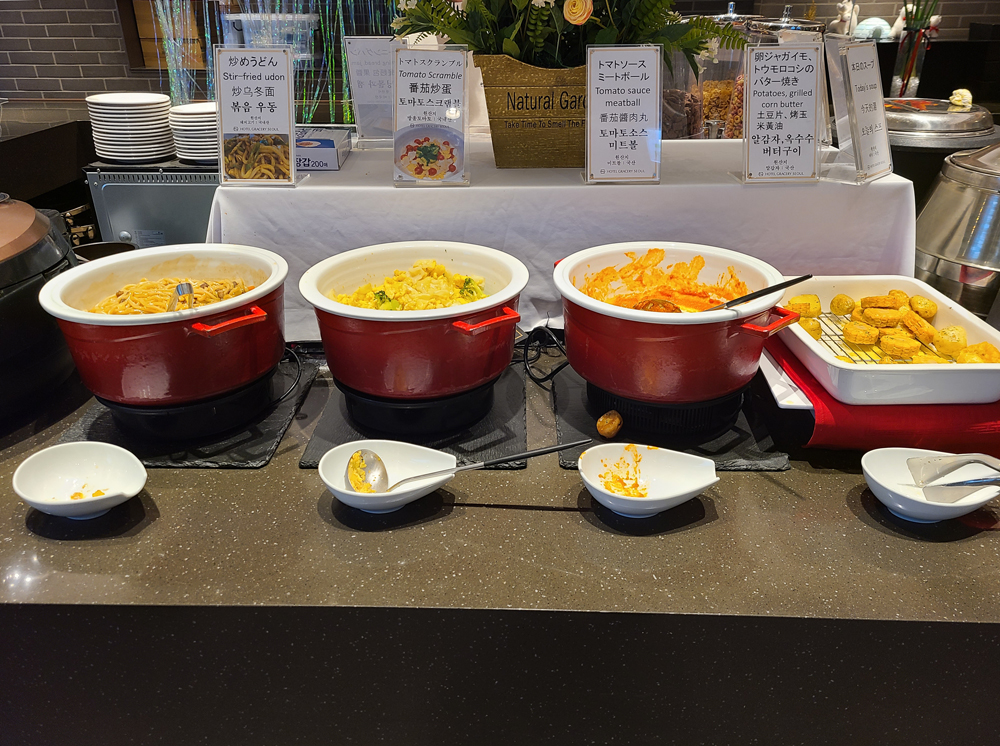 일본 계열의 호텔이라서 그런지 조식 메뉴도 일본어가 가장 먼저 적혀있네요.