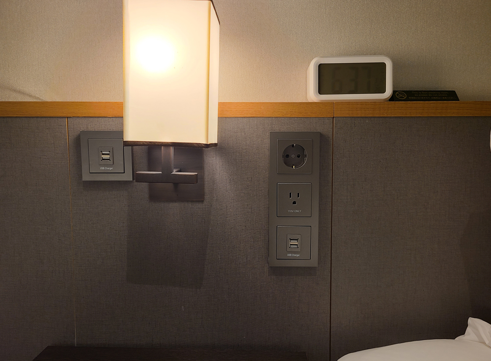 2개 침대 가운데에 콘센트가 있어 어느 자리에서건 편하게 쓸 수 있습니다.