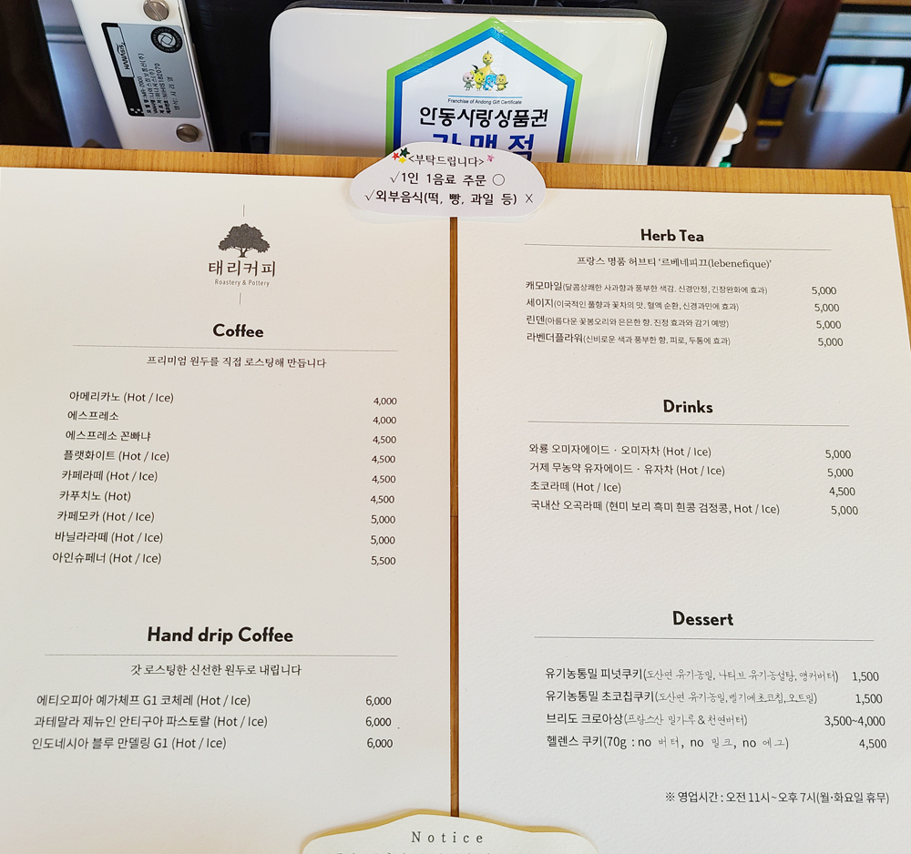 배우 김태리가 여행 브이로그를 촬영하며 들렀던 안동 태리커피인데요.