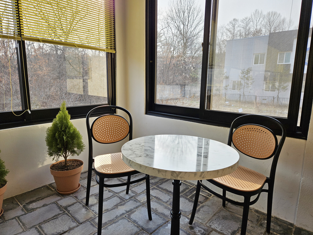 이제 날이 많이 풀려서 마당 야외테이블에서 시간을 보내도 괜찮을 것 같아요.