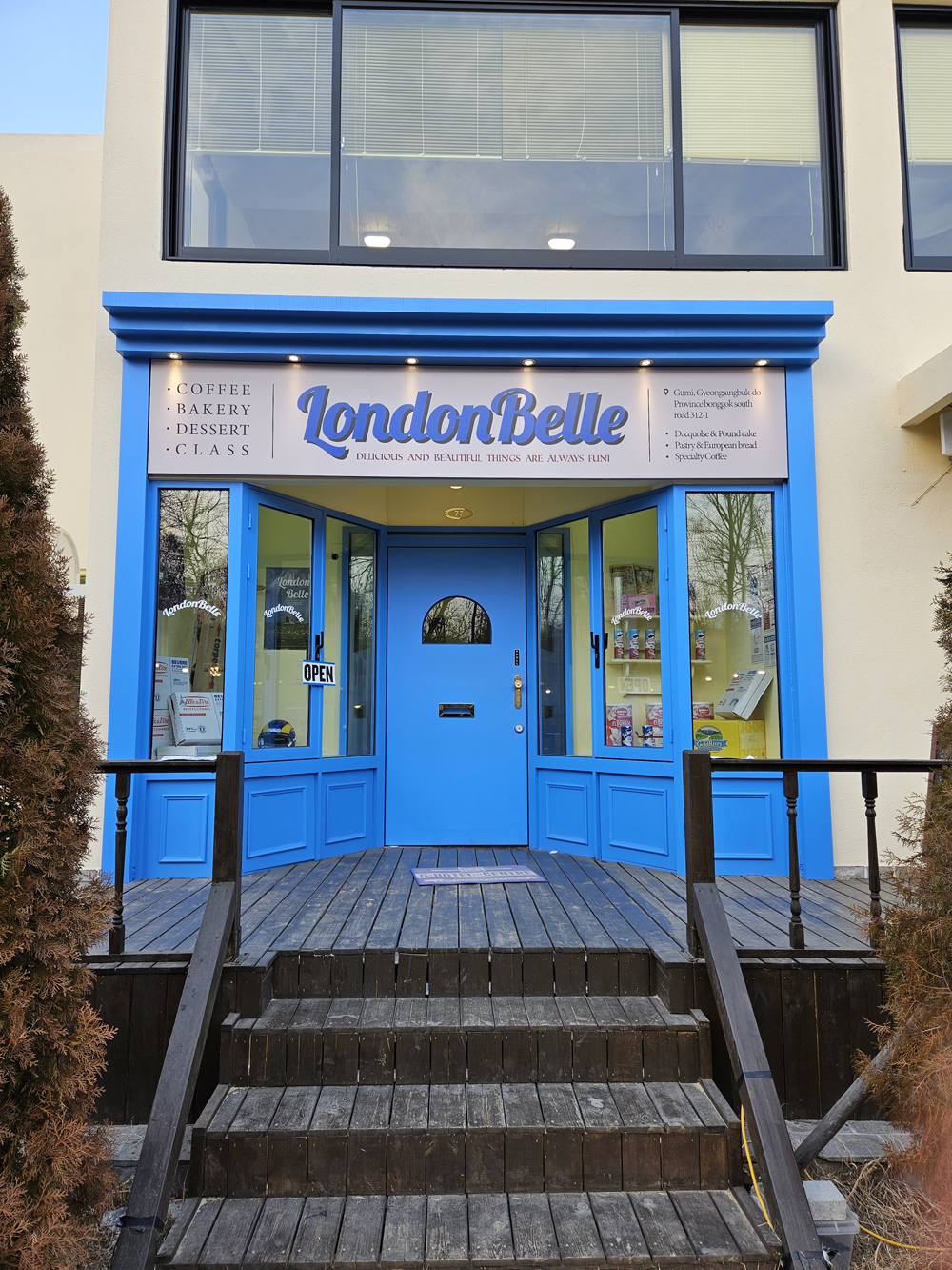 크림색 외관에 강렬한 블루가 인상적인 유럽감성 물씬 풍기는 구미 봉곡동 카페 런던벨.