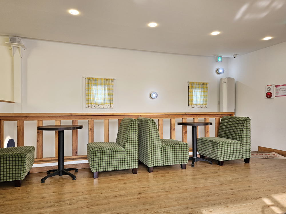 1층과 달리 2층 창가자리는 바닥재로 독특하죠.