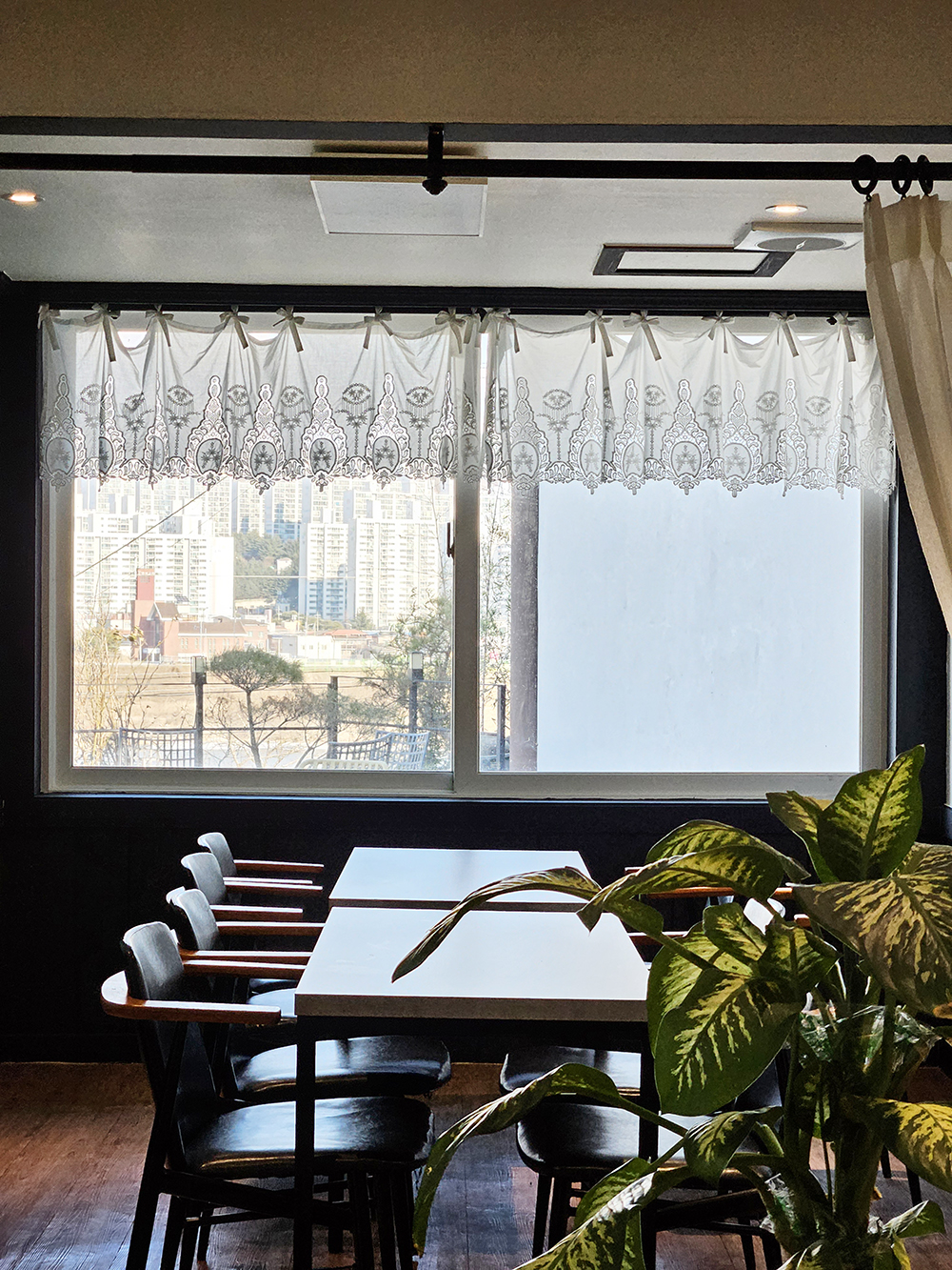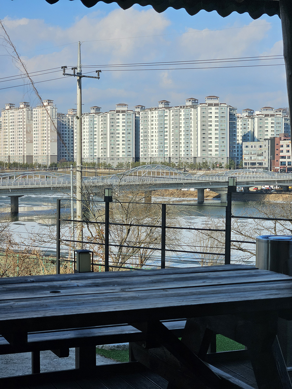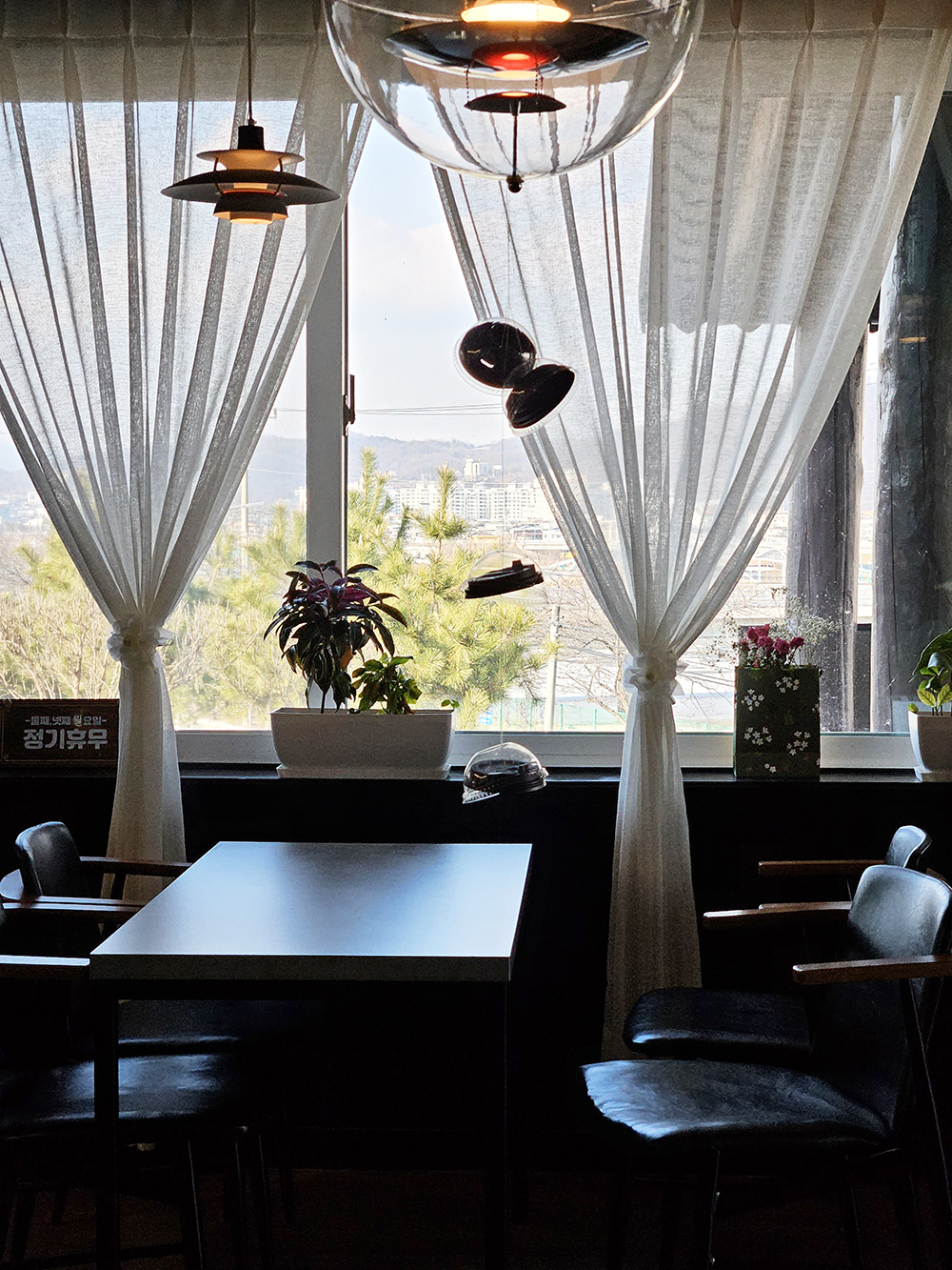 카페는 강변쪽 도심을 바라보는 위치에 자리잡고 있어요.