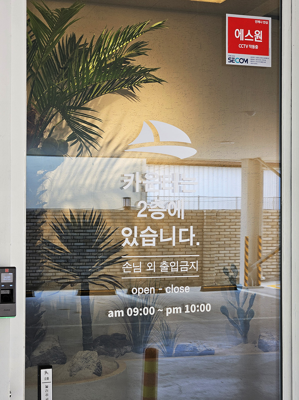 1층 주차장 또는 건물 뒷편 주차장에 차를 세우고 계단을 따라 건물 2층으로 올라가면 카페예요.