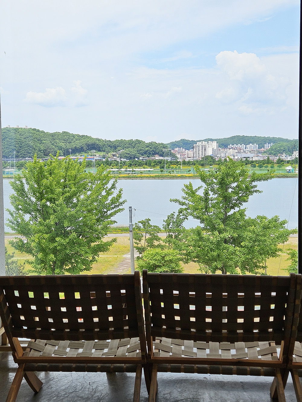 강변을 바라보는 통창과 넓은 실내 공간을 자랑합니다.
