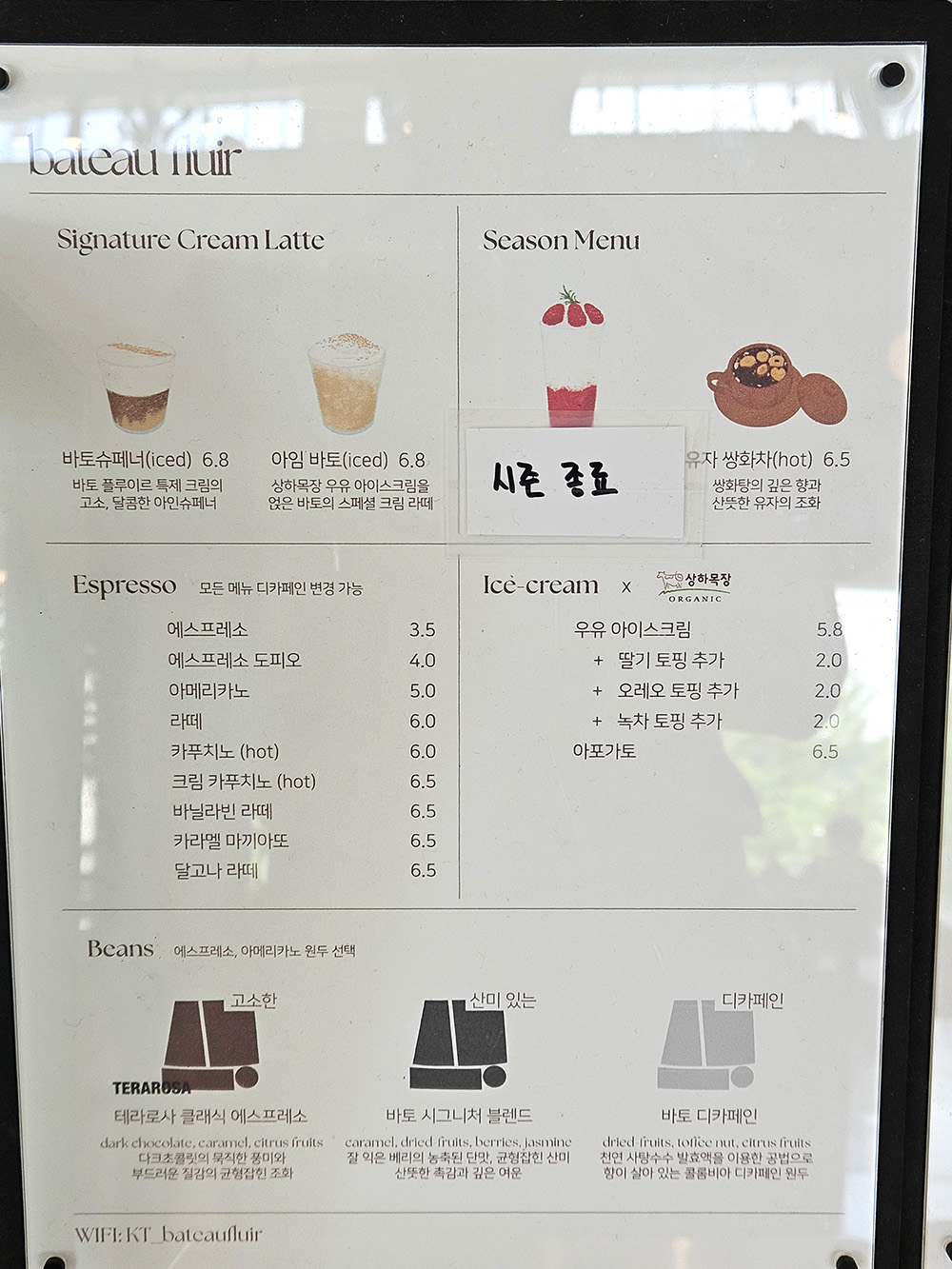 원두는 고소한 테라로사 클래식 에스프레소, 산미가 있는 바토 시그니처 블렌드, 디카페인 3종류 중에서 선택하실 수 있답니다.