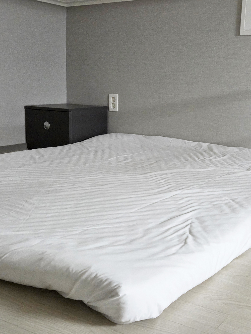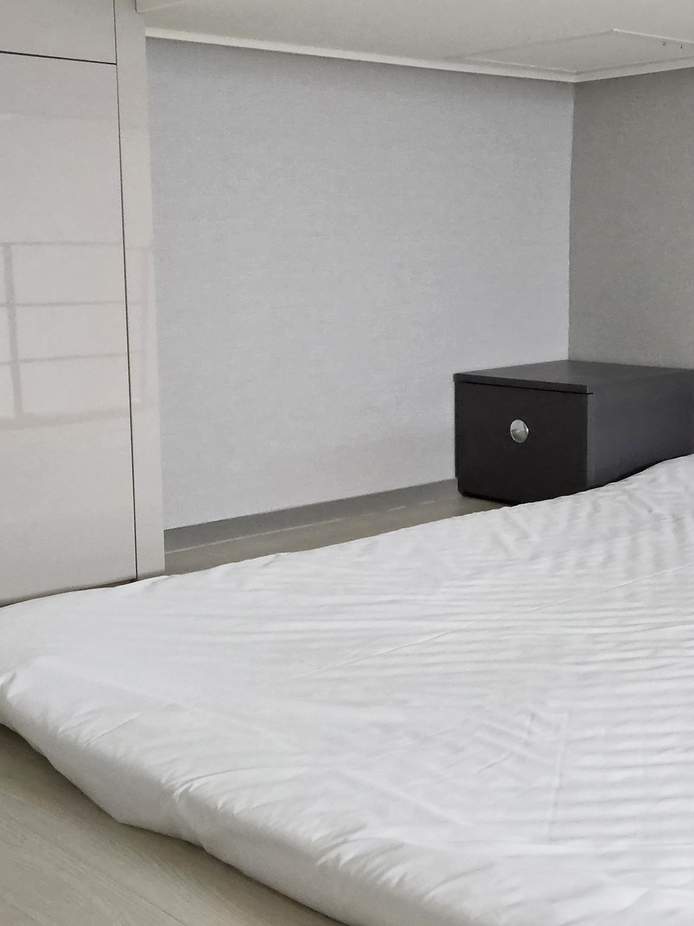 2층에는 낮은 천장에 토퍼 매트가 깔려 있는 구조입니다.