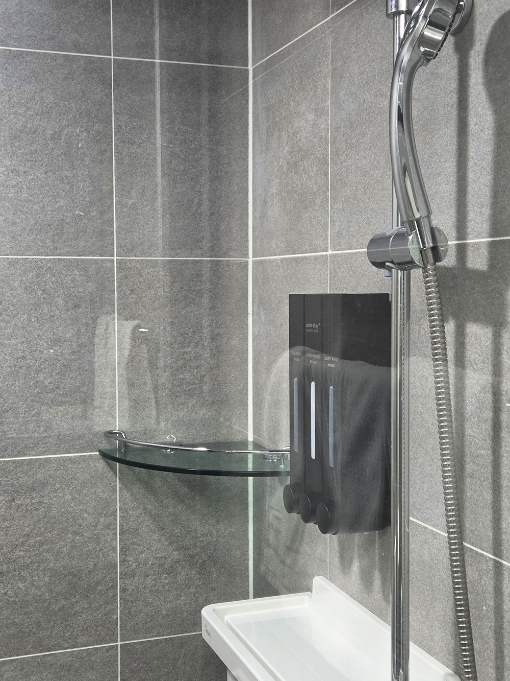 변기에는 비데도 설치되어 있고, 샤워부스도 있습니다.