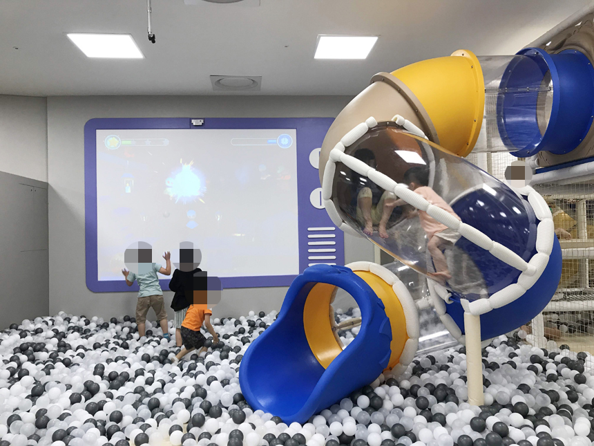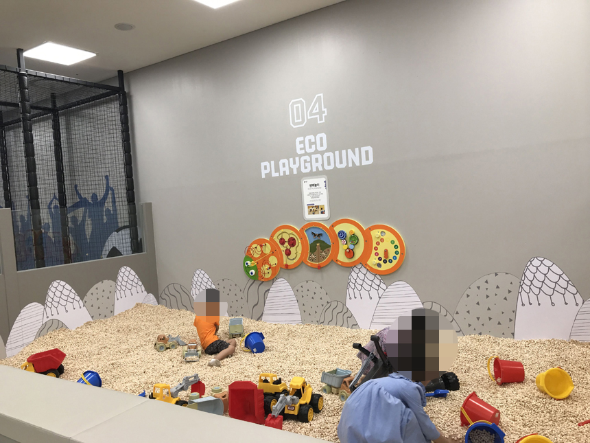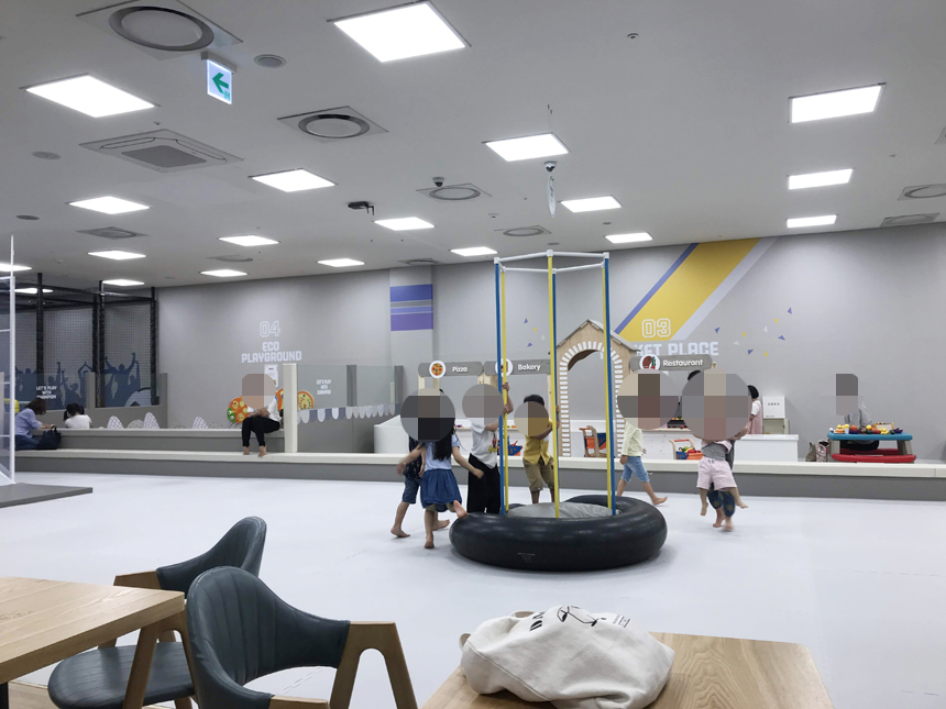 보호자가 옆에 있어야 하는 영유아는 안되겠지만 좀 큰 아이들의 경우 장을 보는 동안 놀게 할 수 있다는 장점이 있다.