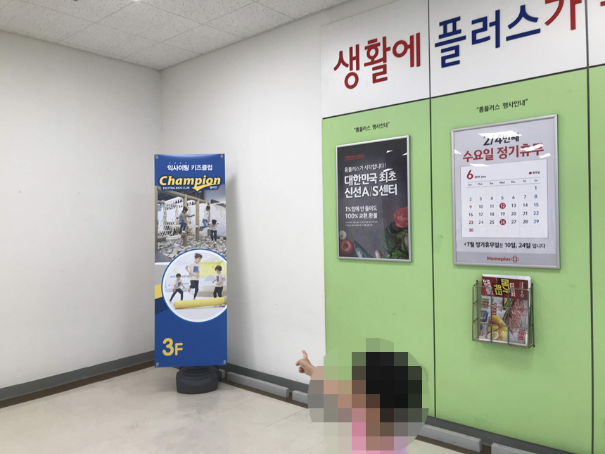경북 도청점도 그랬지만 홈플러스점도 아이들이 음료수나 아이스크림을 먹다가 흘리면 직원이 바로 와서 청소를 해 주어서 밟고 다니지 않아서 좋았다.