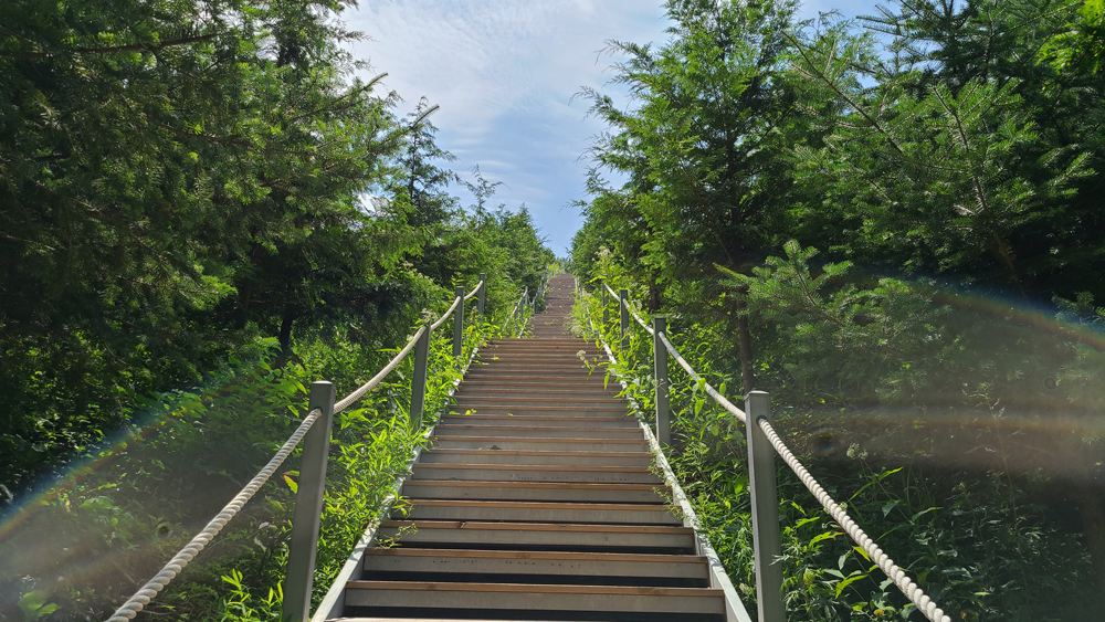 숲길을 걷다가 계단을 올라 전망대로 가면