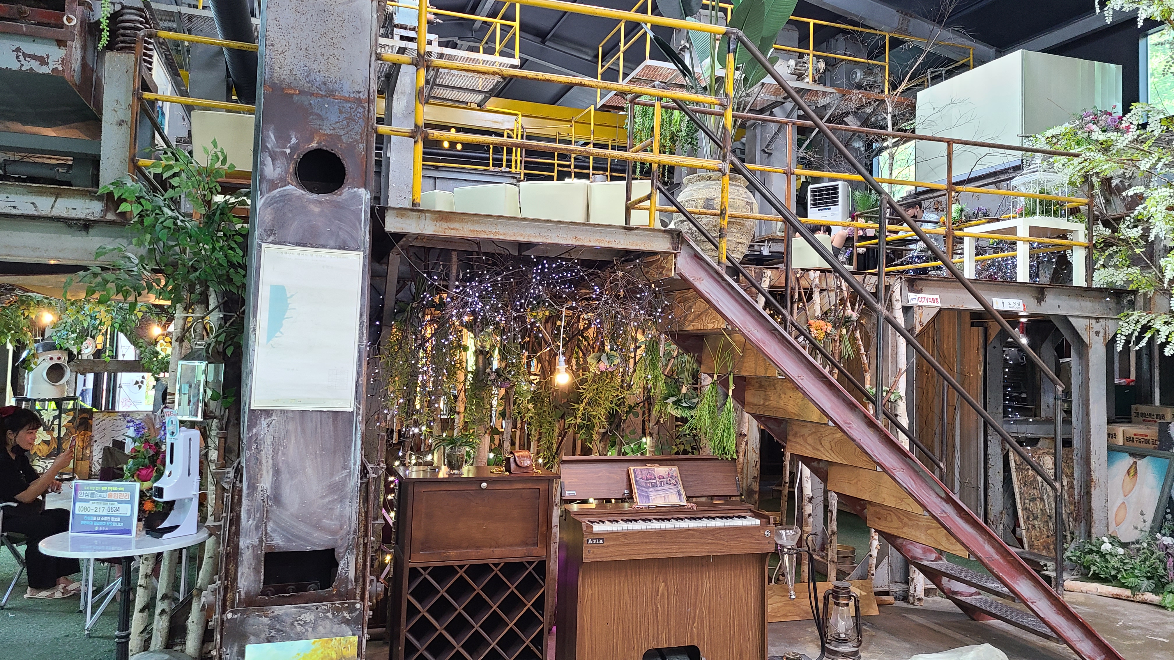 창고나 공장이었던 곳을 그대로 활용해 카페로 개조한 것 같습니다.