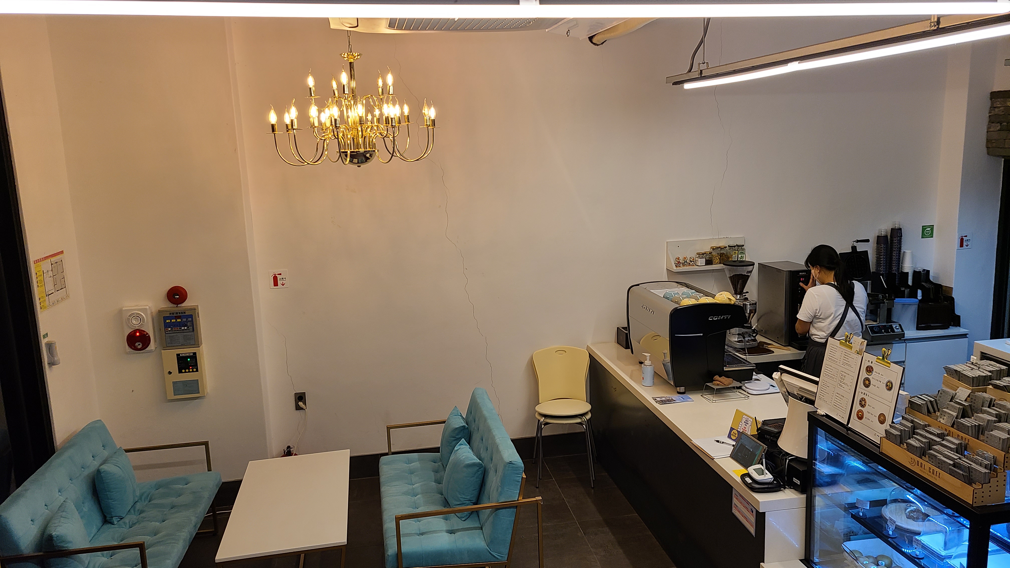 매장안으로 들어가면 카운터와 쇼케이스가 있고 바로 앞으로 테이블이 하나 있어요.