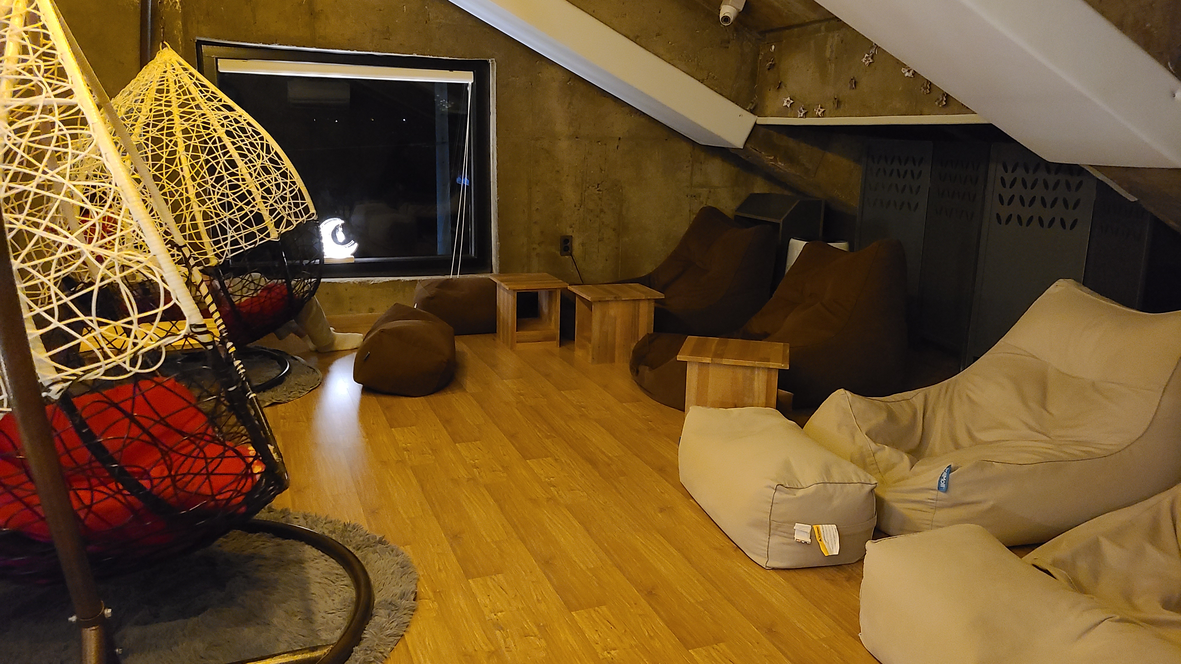 테이블 대신 빈백이 있어 좀 더 편하게 쉴 수 있도록 꾸며놓았네요.