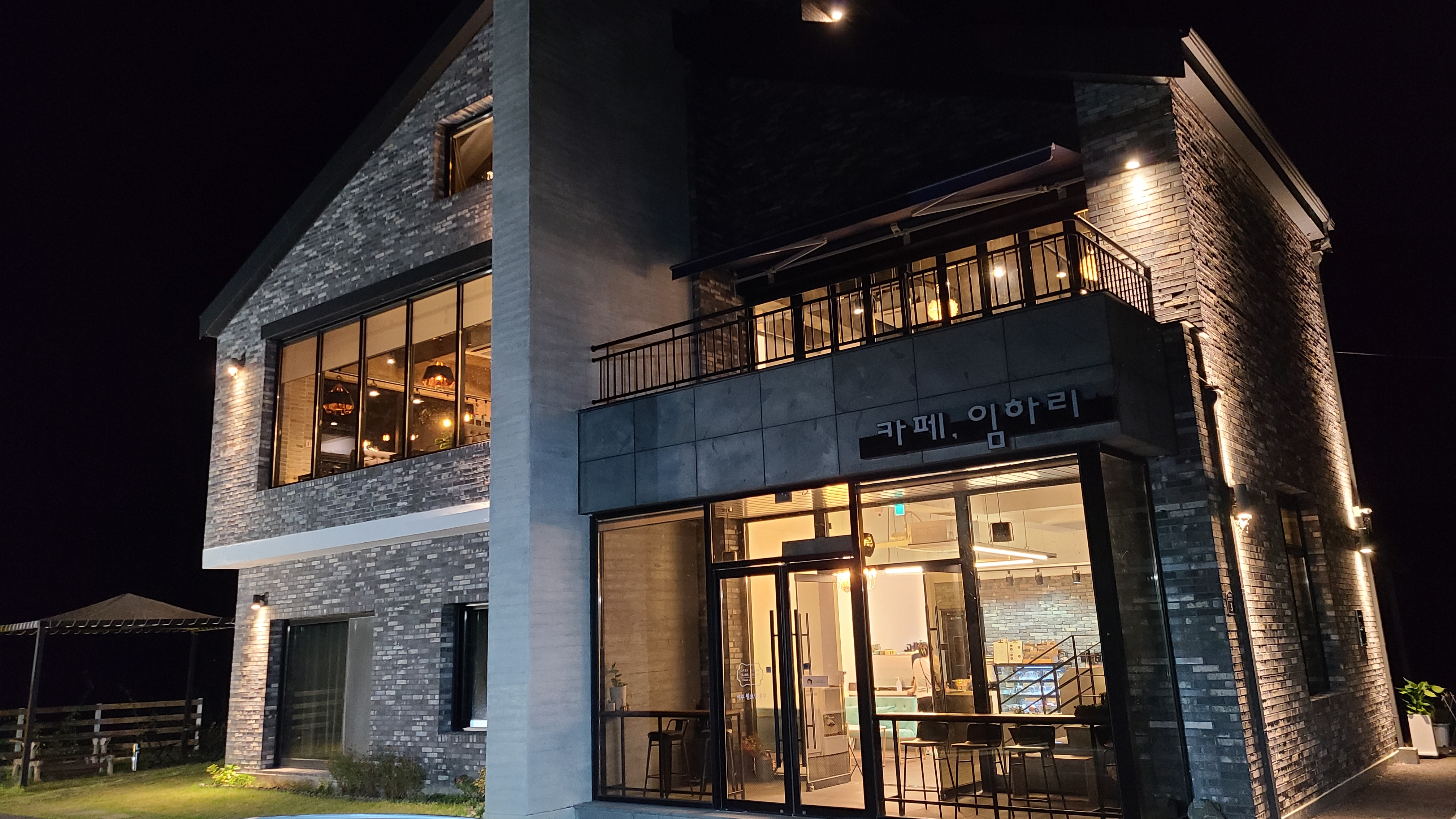 금소생태공원에서 시내방향으로 오다보면 '달' 조형물이 보이는 곳에 카페가 있어요. 카페 이름은 임하리. 해가 지고 밤 시간에 찾아서 보이지 않지만 카페 바로 앞으로 길안천이 흘러 '강뷰'가