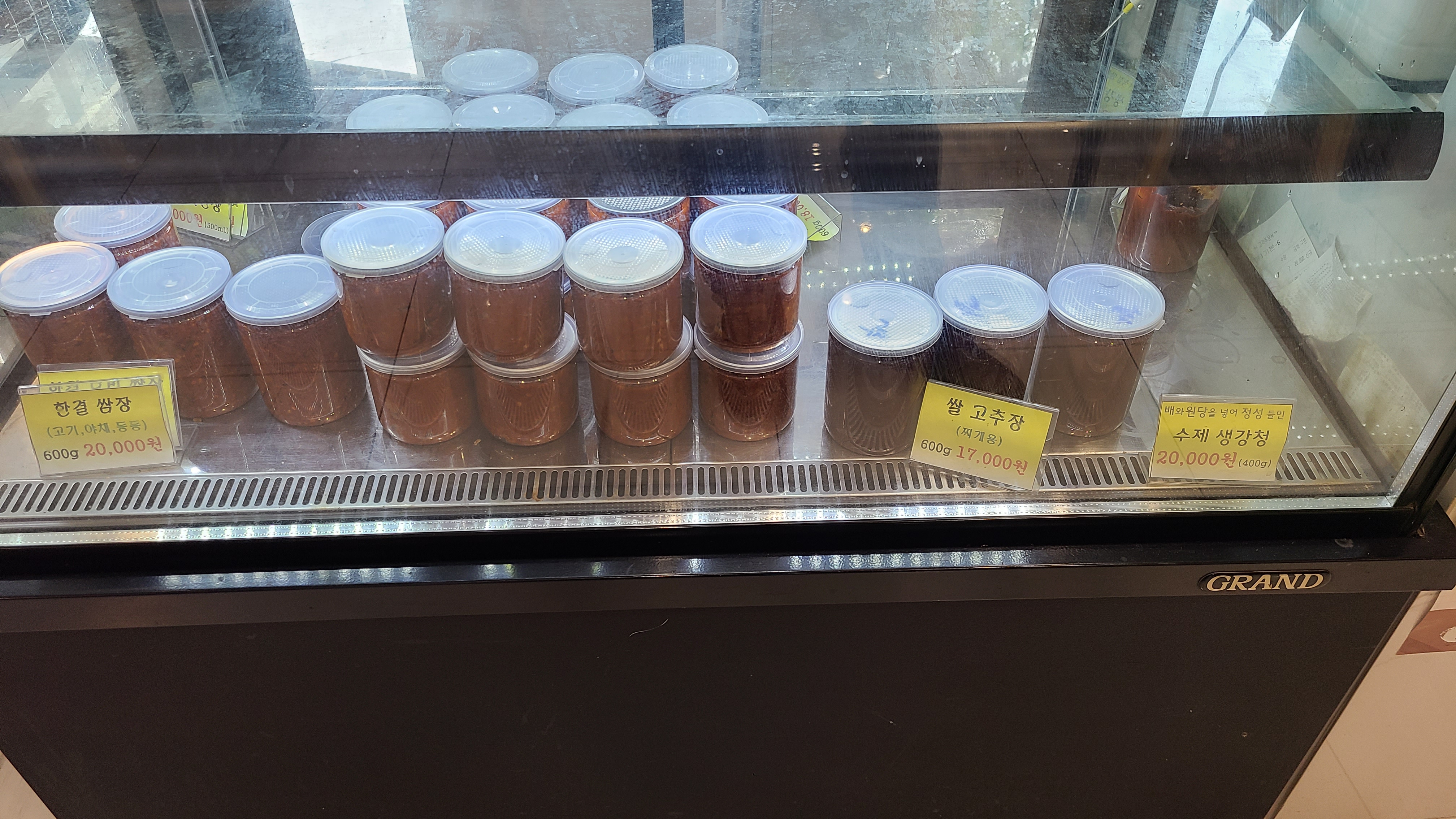 가게 내 쇼케이스에는 쌈장, 고추장 부터 생강청도 있어요.