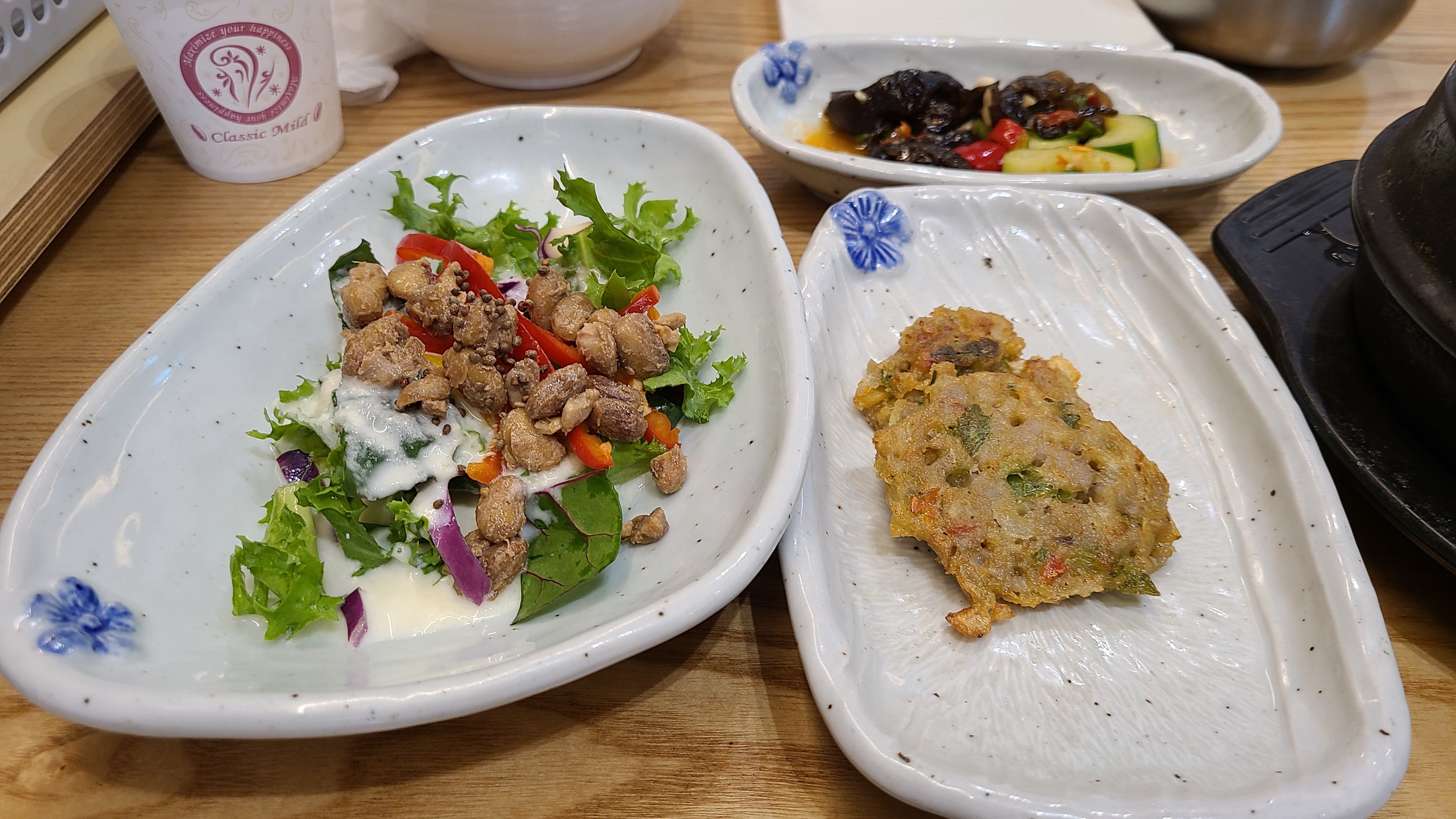 샐러드 드레싱이 청국장 콩이예요.