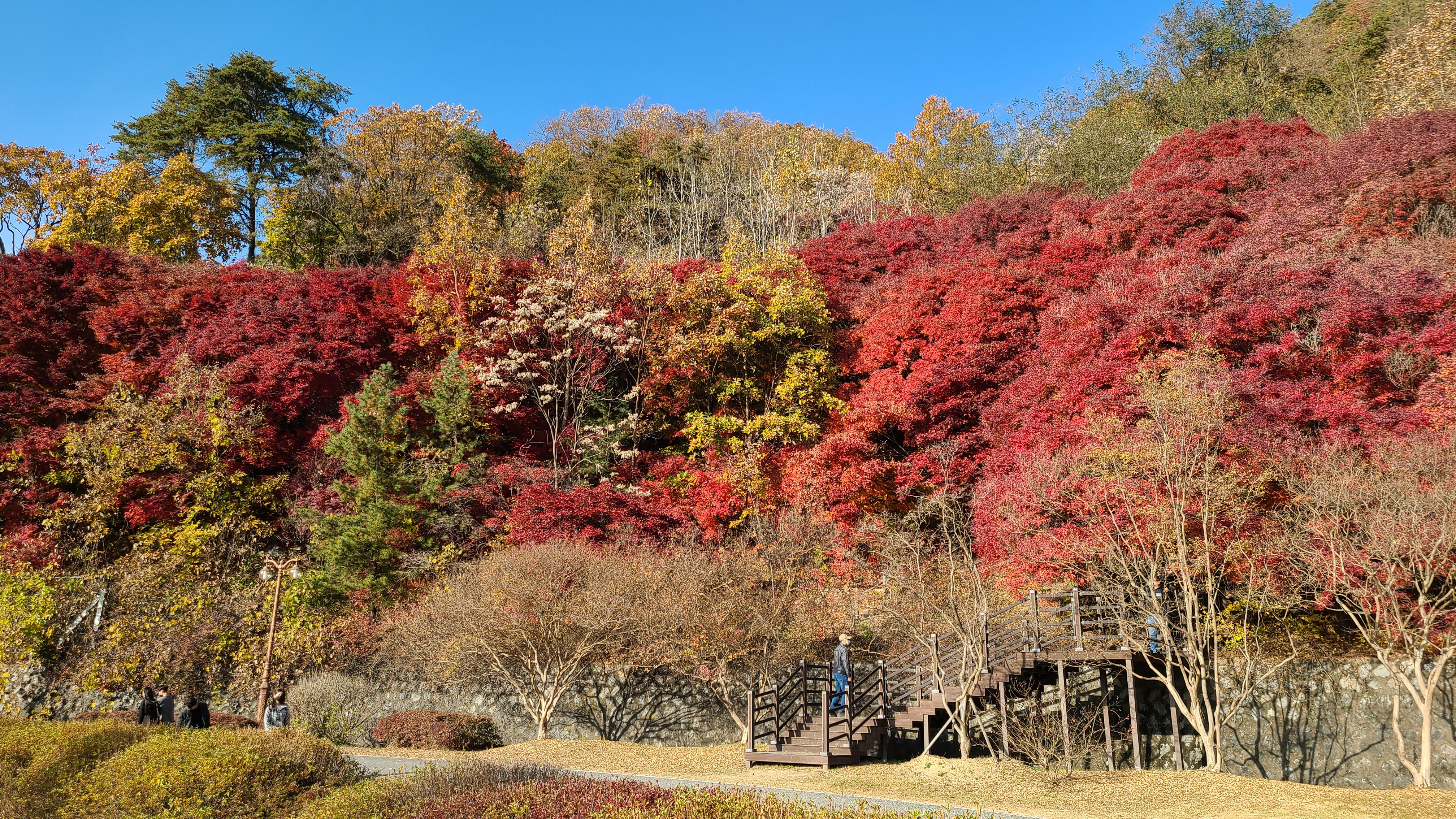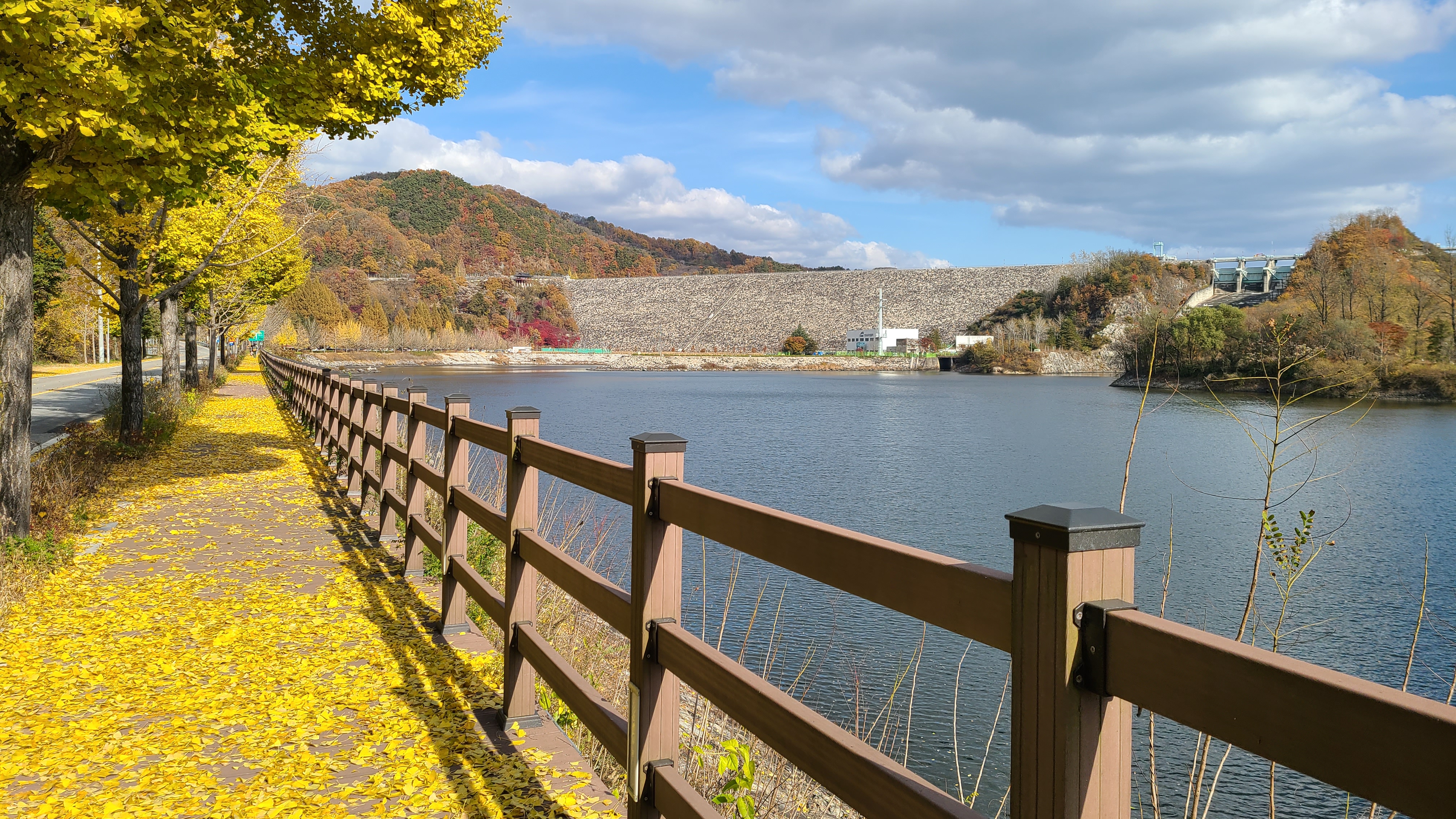 데크를 따라 은행잎을 사뿐히 밟으며 산책을 해 봅니다.