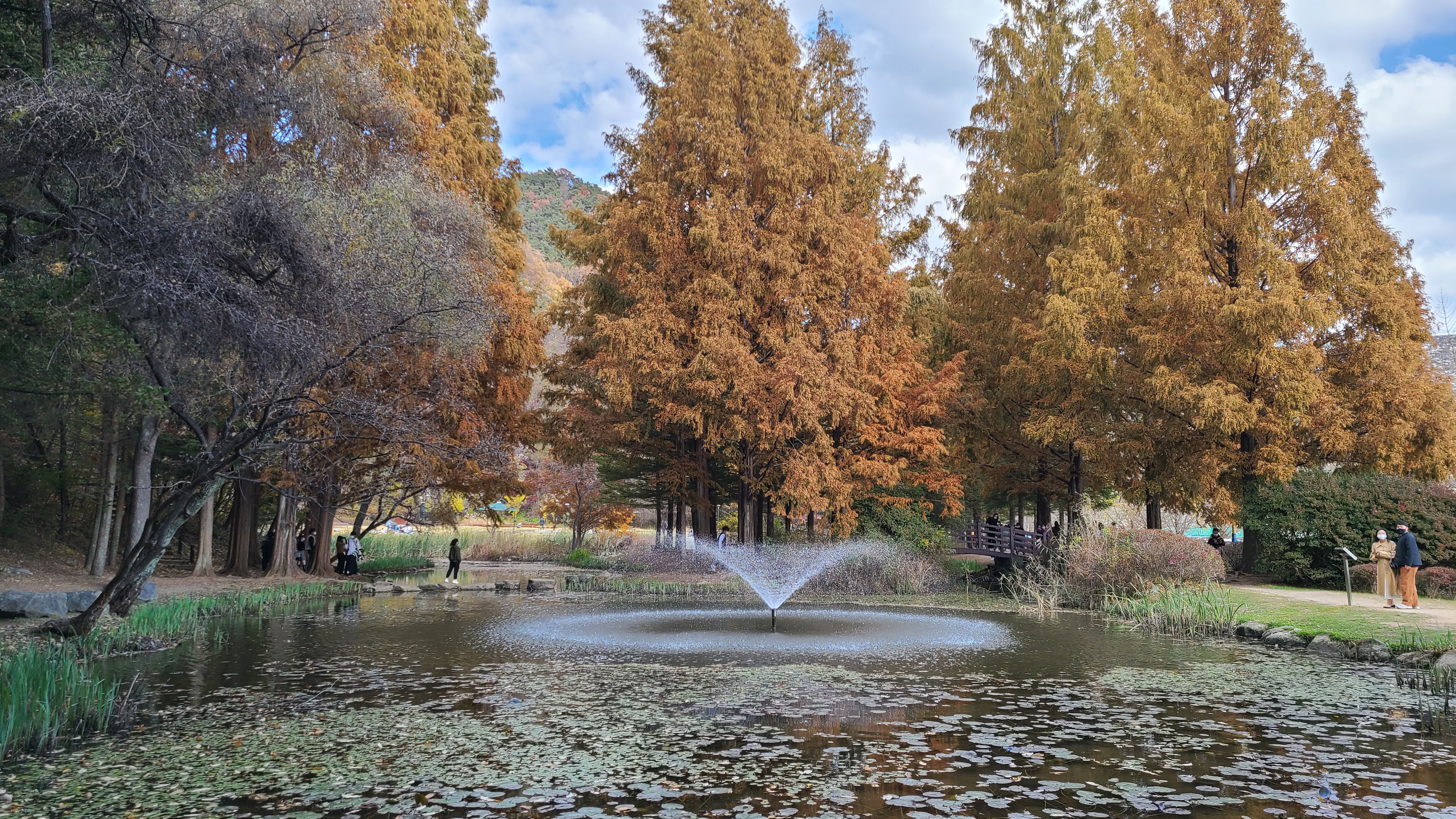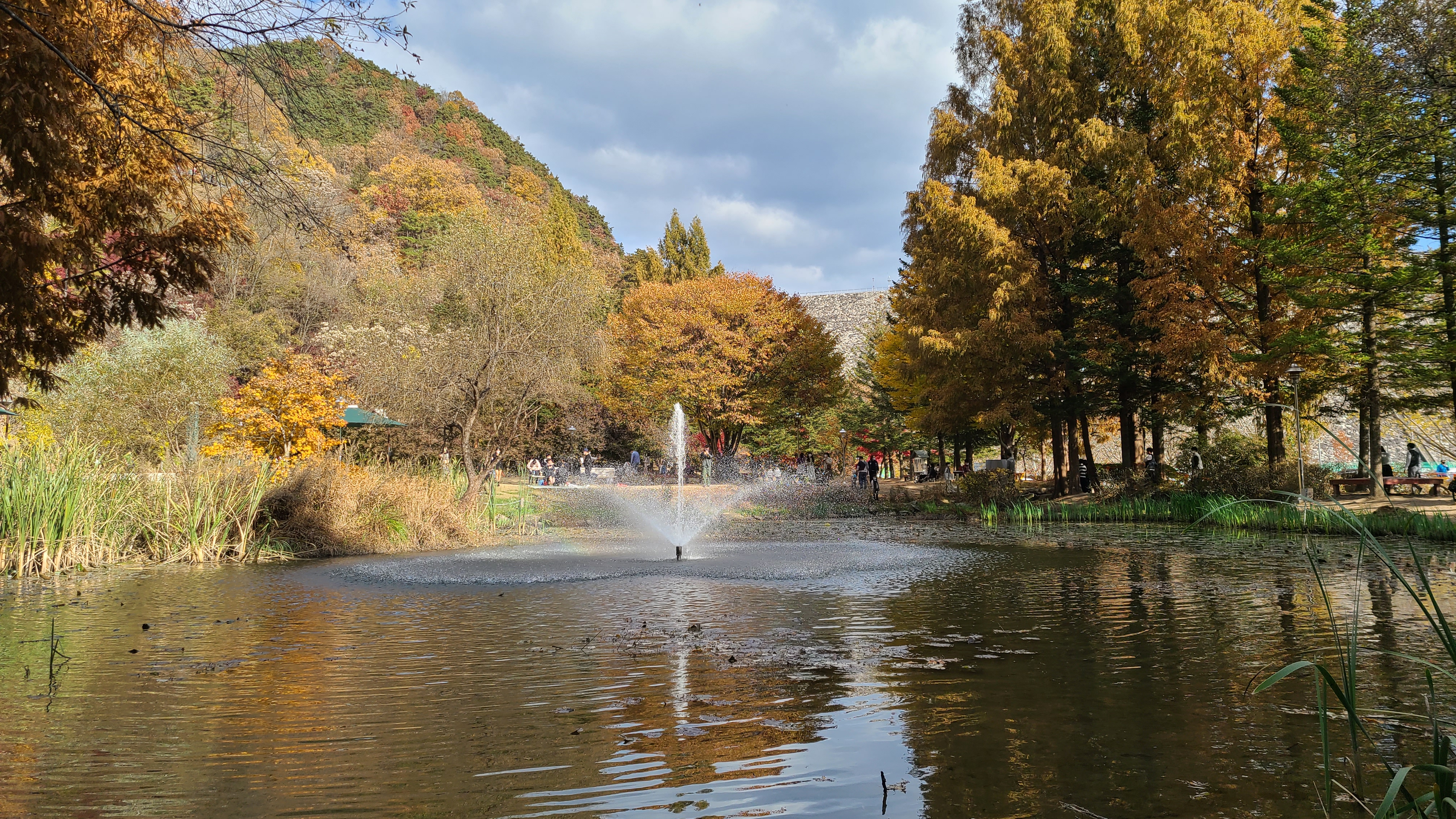 공원으로 들어가는 길은 도로 양쪽 가로수가 은행나무로 해마다 가을이면 노란 은행잎으로 장관을 이루지요.