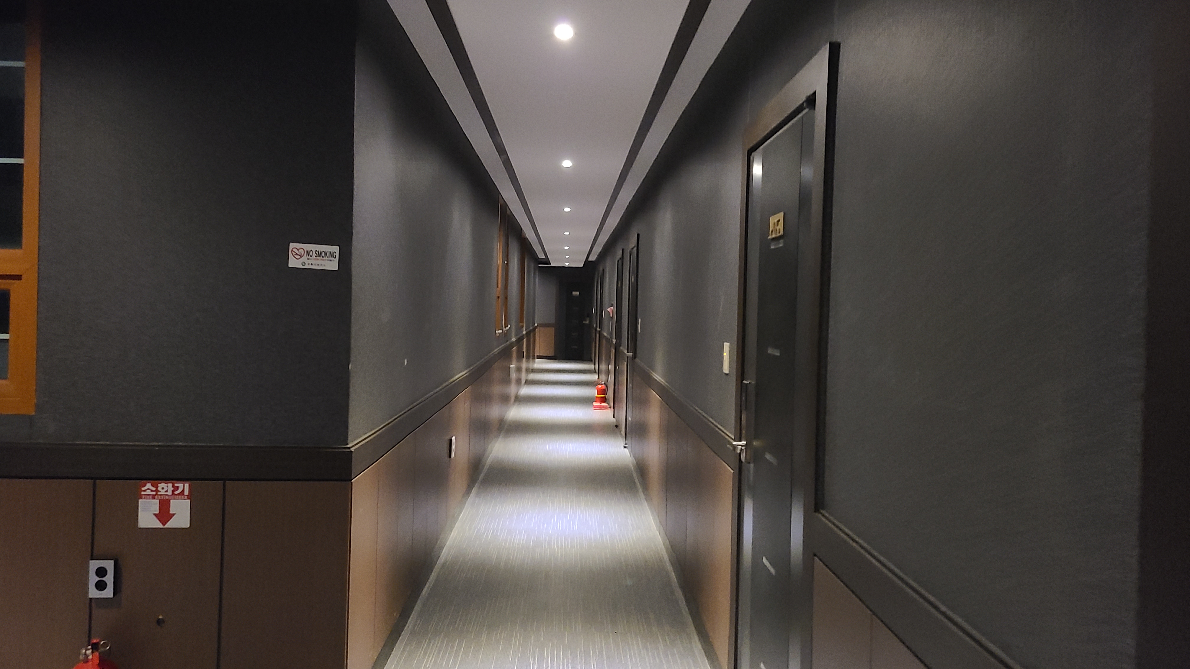 어두운듯 하지만 깔끔한 복도를 지나 방으로 들어갑니다.
