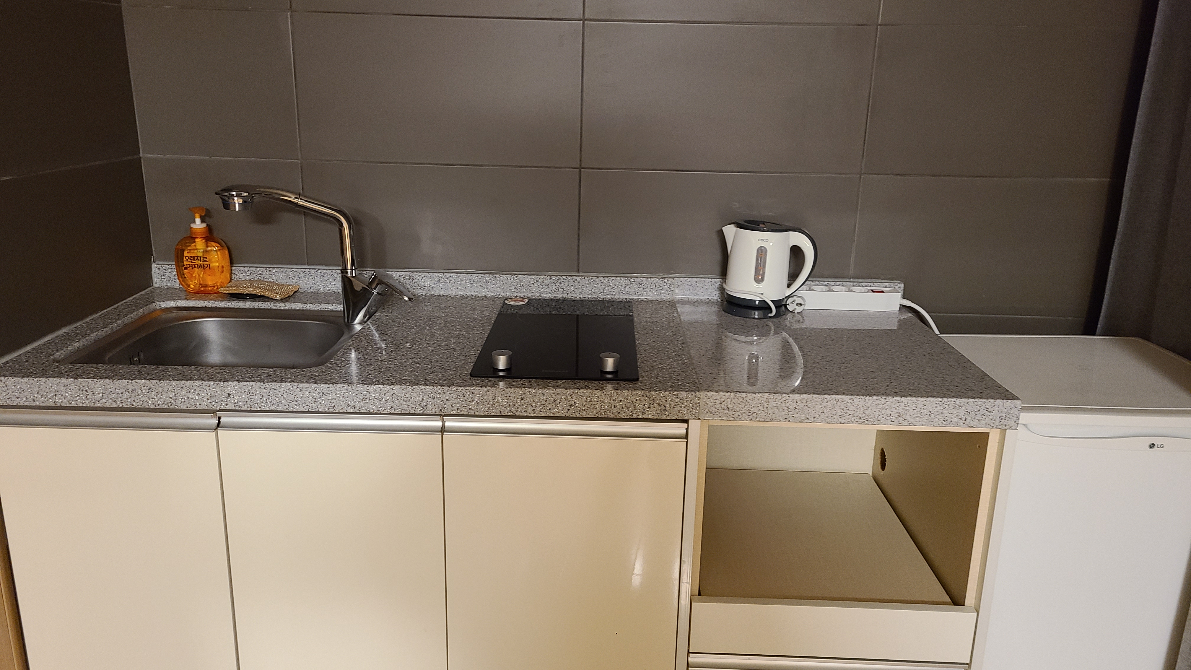 콘도형 호텔로 객실에 싱크대가 있어요.