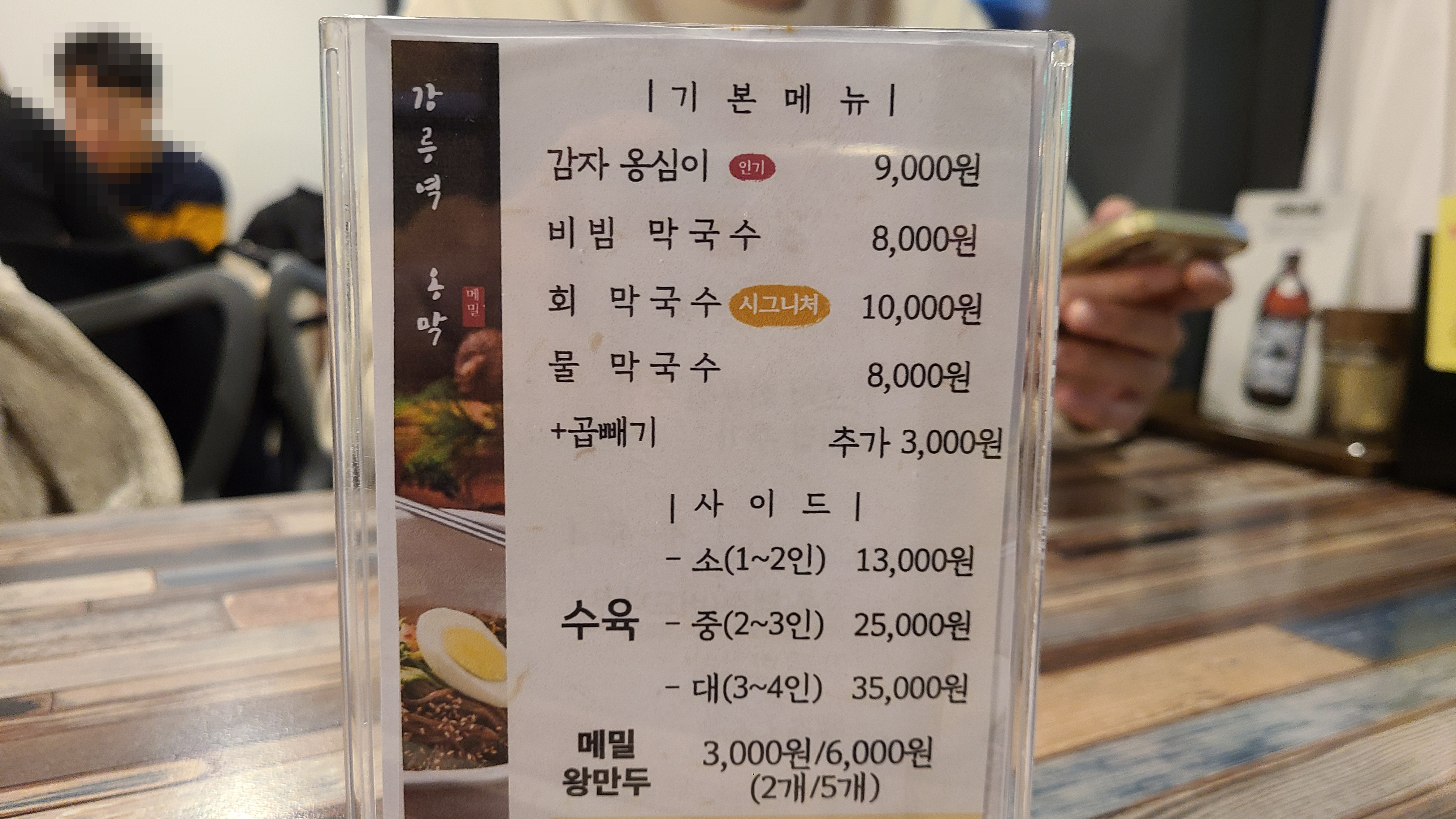 뜨끈하고 구수한 국물에 쫀득하면서도 서걱한 감자옹심이 특유의 식감이 살아있습니다.