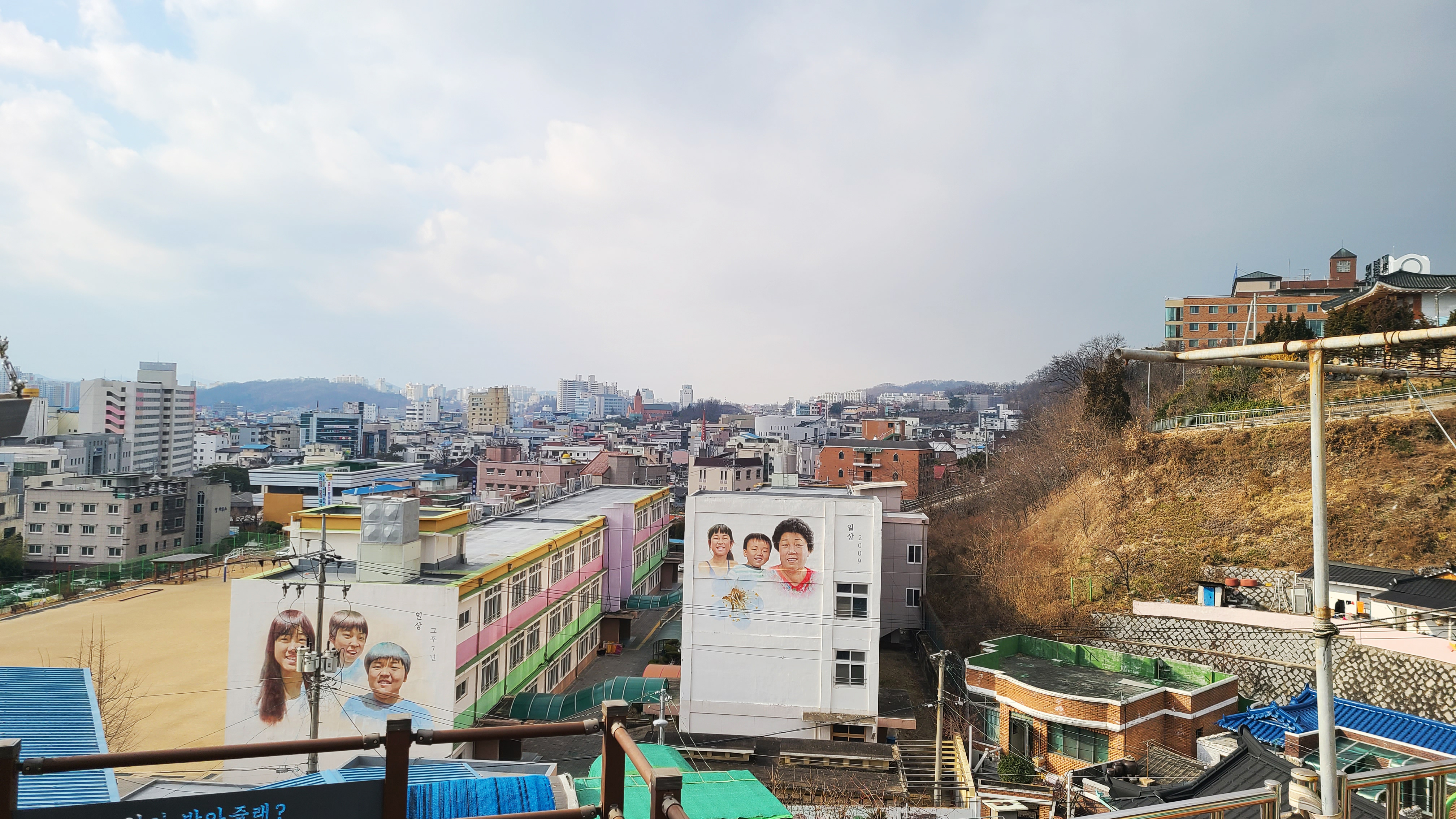 벽화가 그려진 골목길을 걸어 올라가면 가장 높은 곳에 다다릅니다.