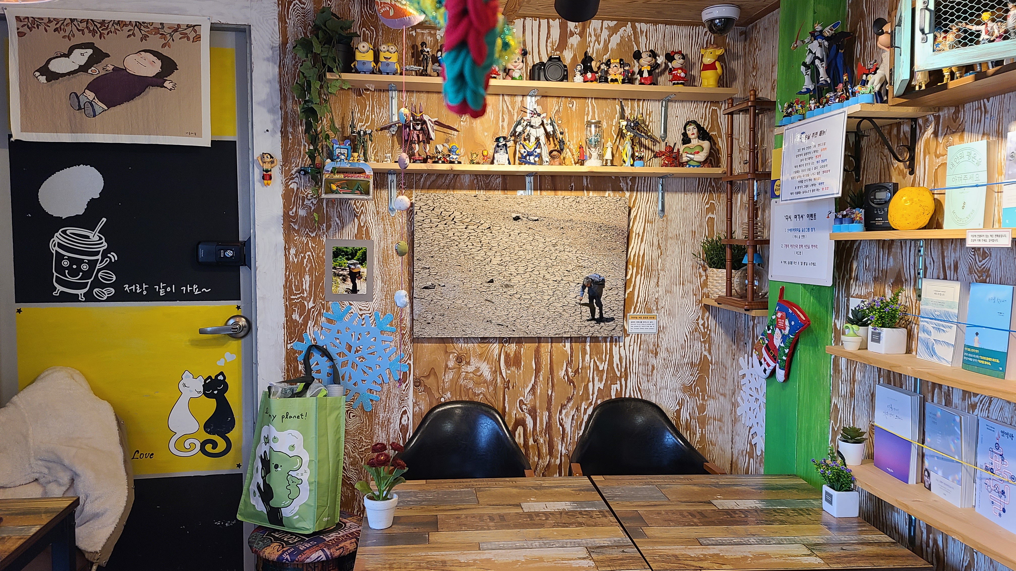 카페 내부는 색깔도 알록달록하고 작고 귀여운 소품들이 가득합니다.
