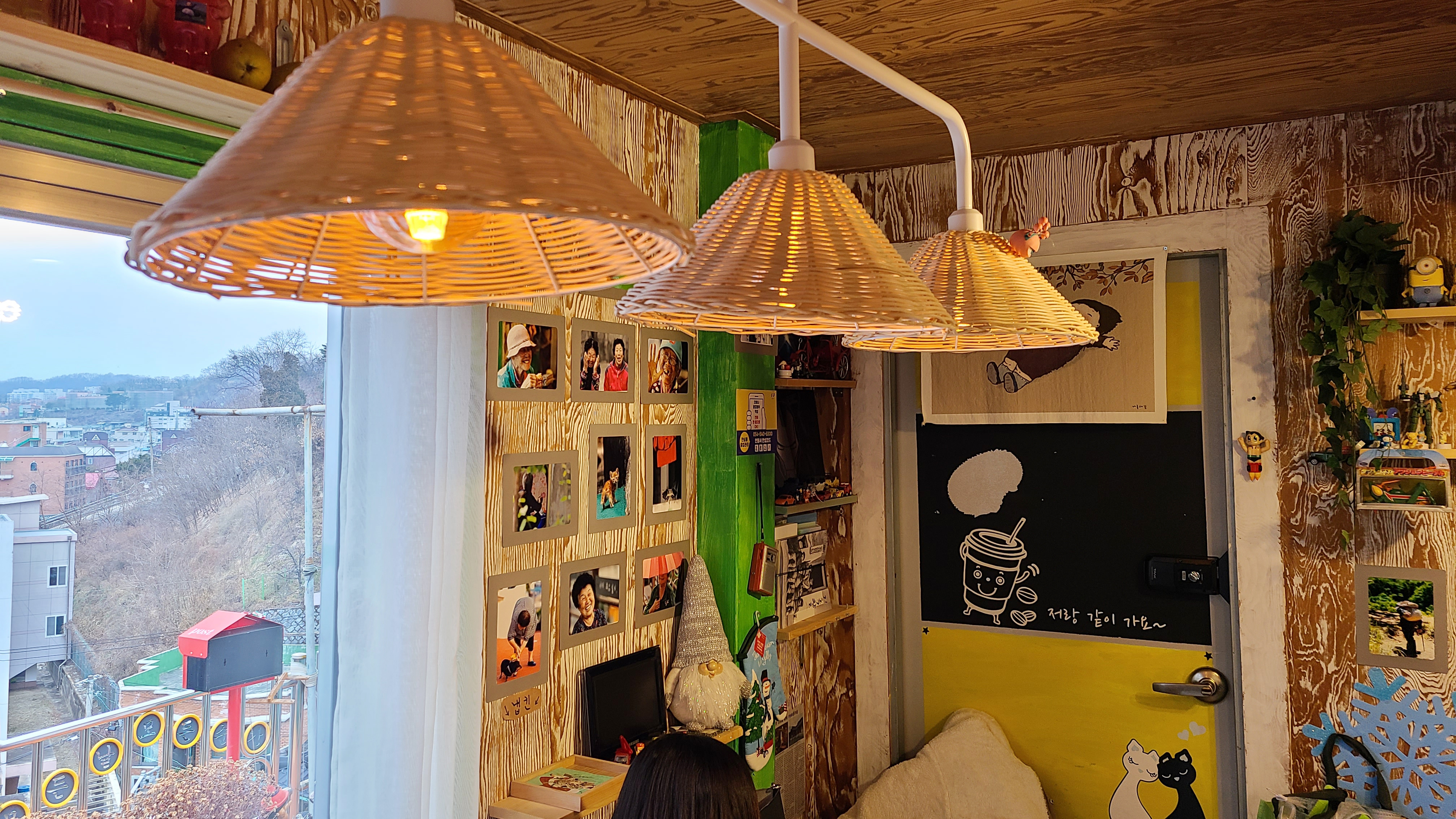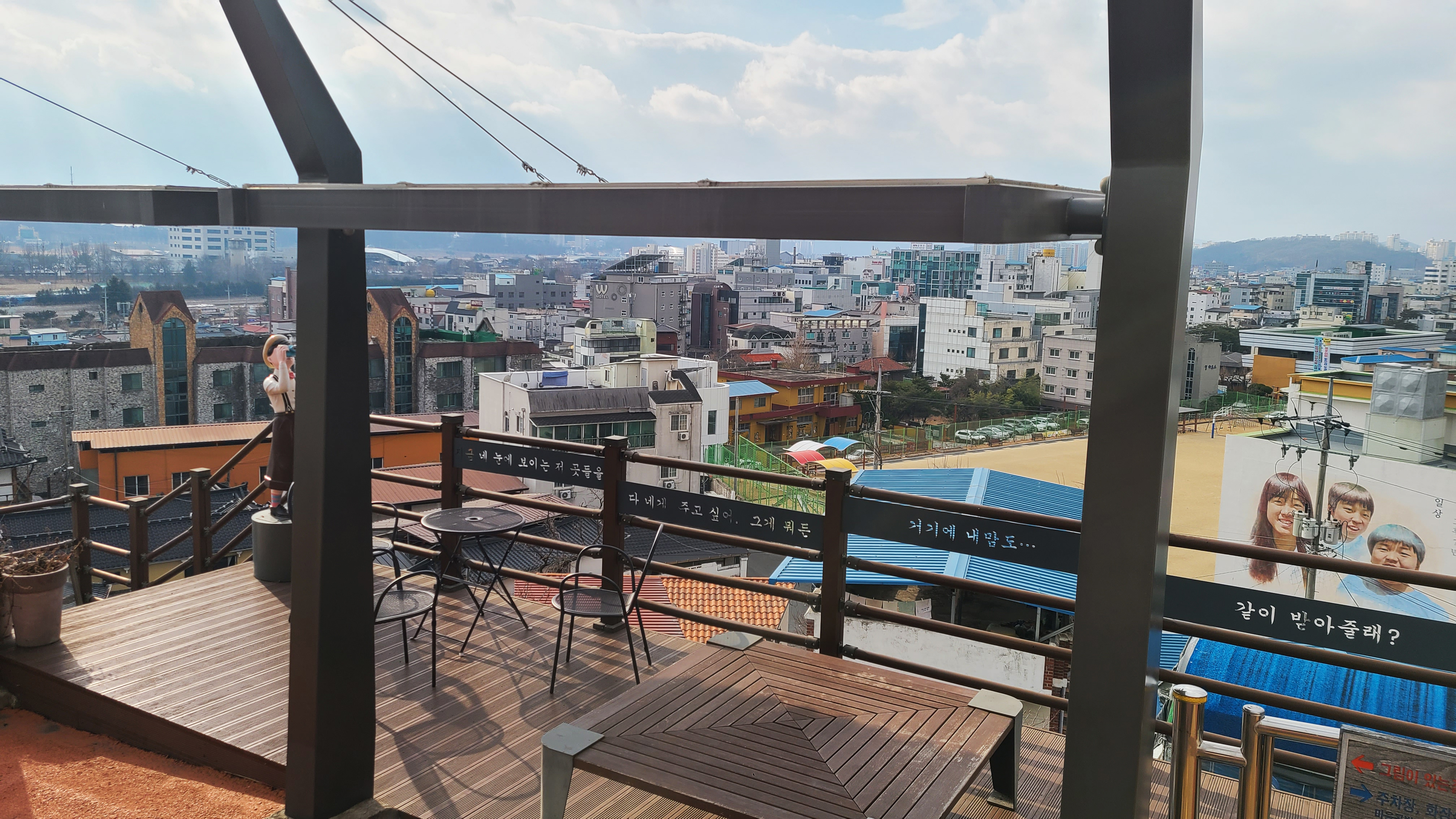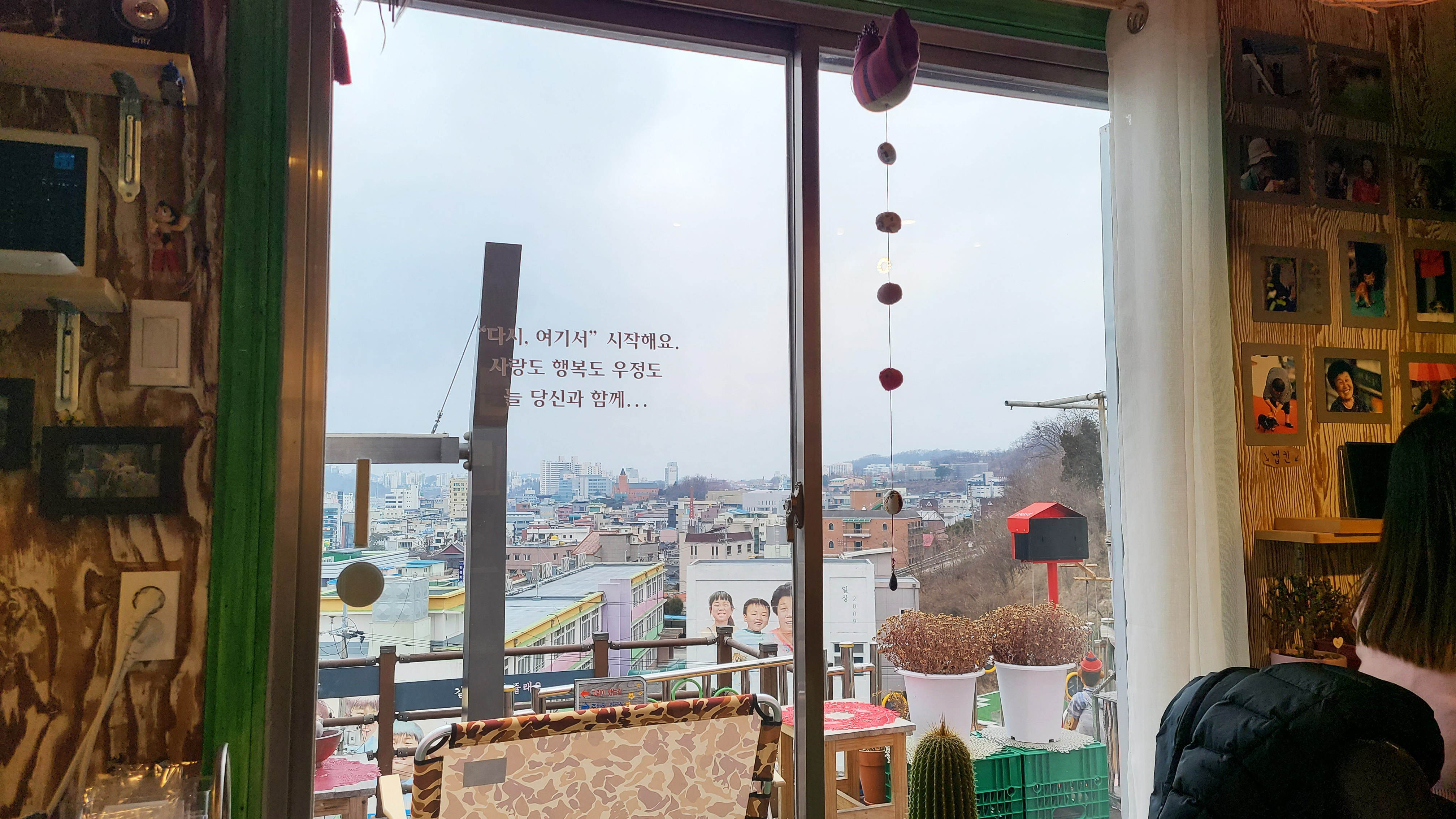 마음이 따뜻해지는 음료와 원도심 전망을 함께 즐길 수 있는 신세동 벽화마을 카페 '다시 여기서'였습니다.
