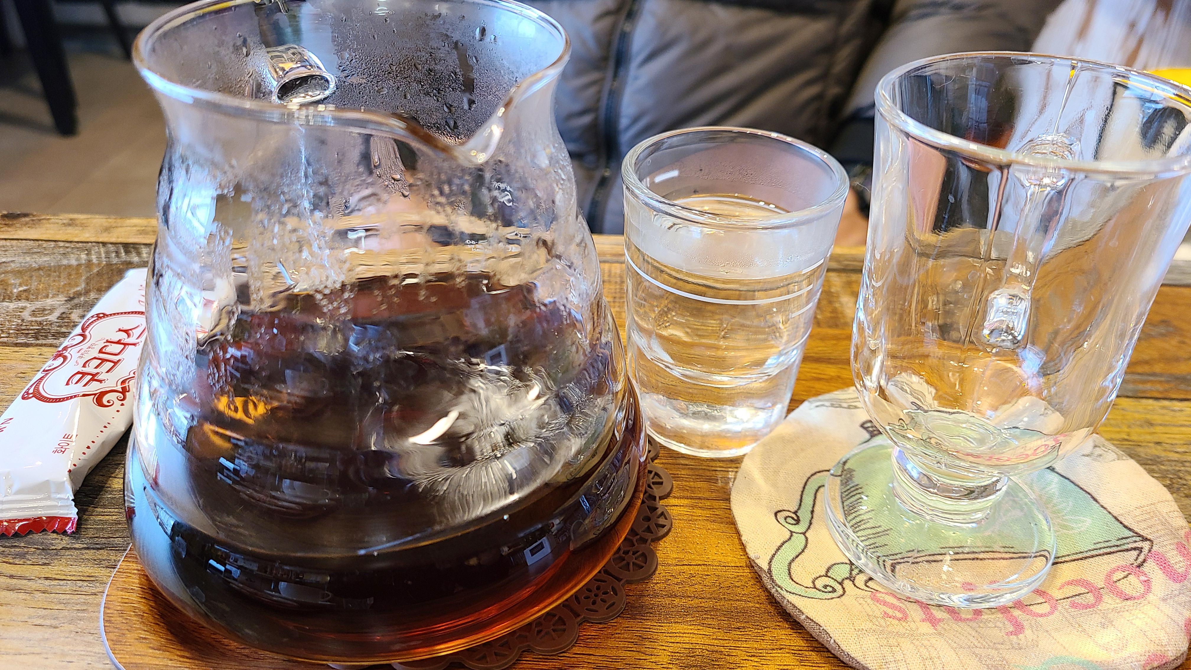 사장님이 내린 핸드드립 커피가 나왔습니다.