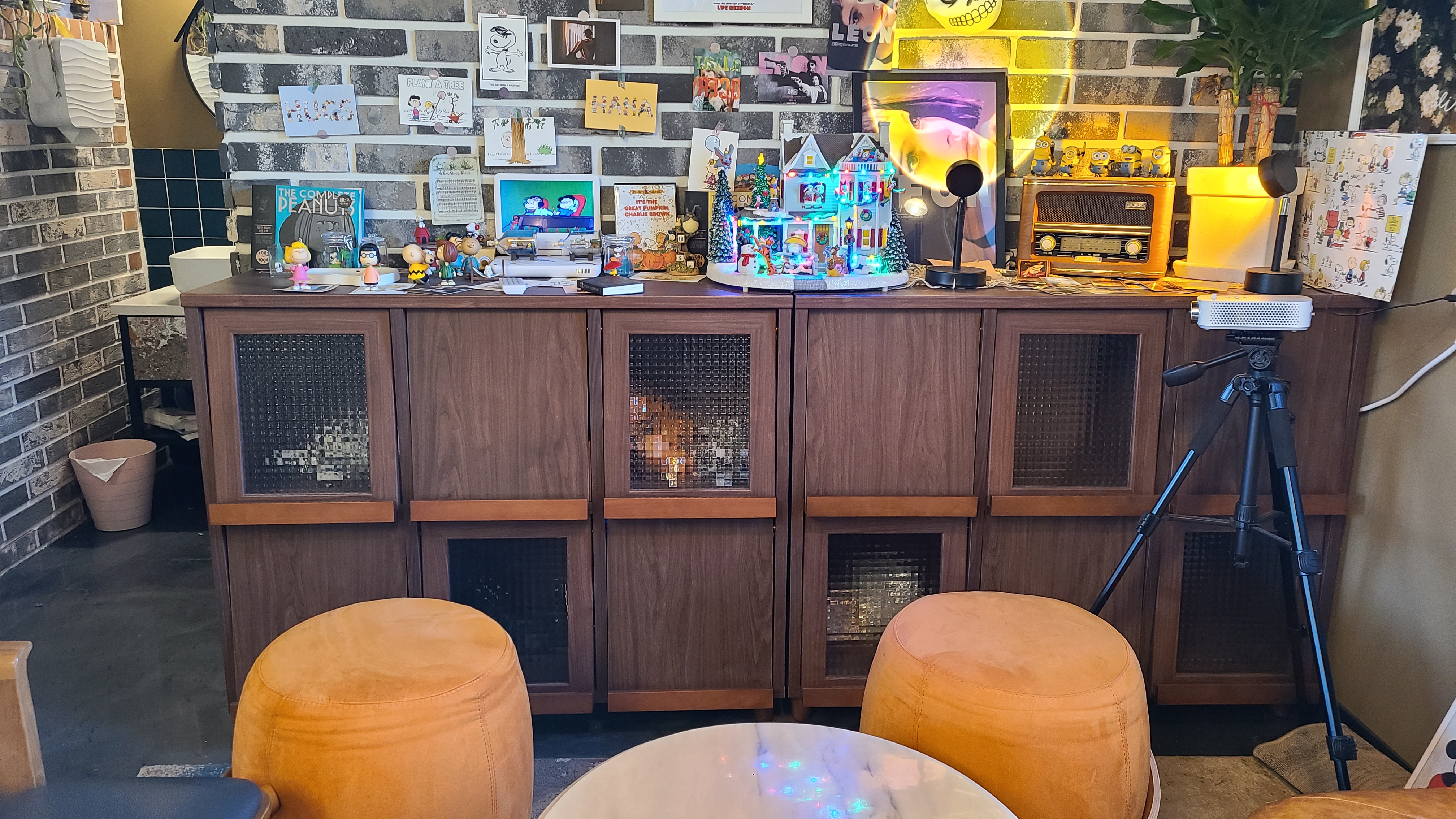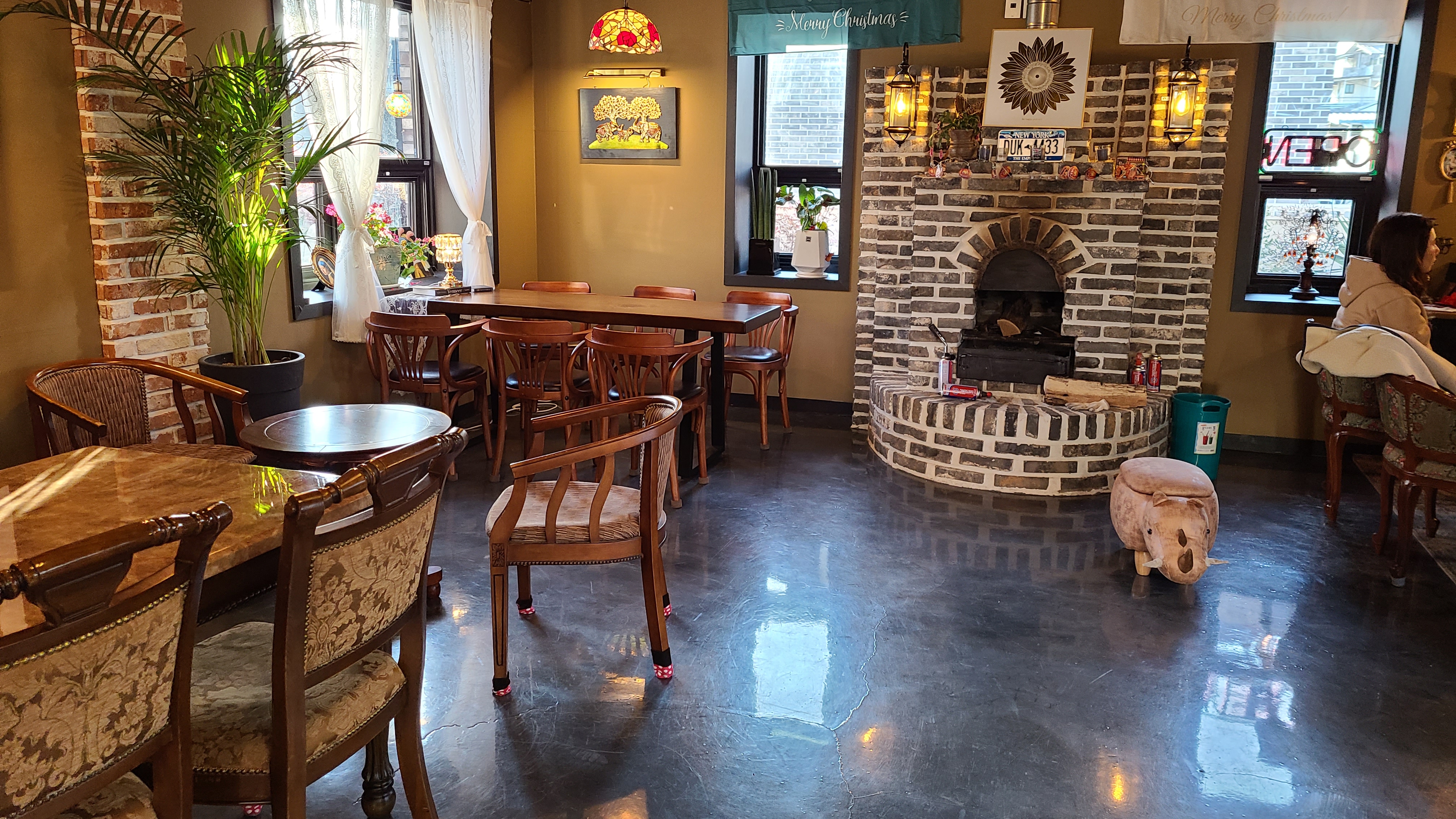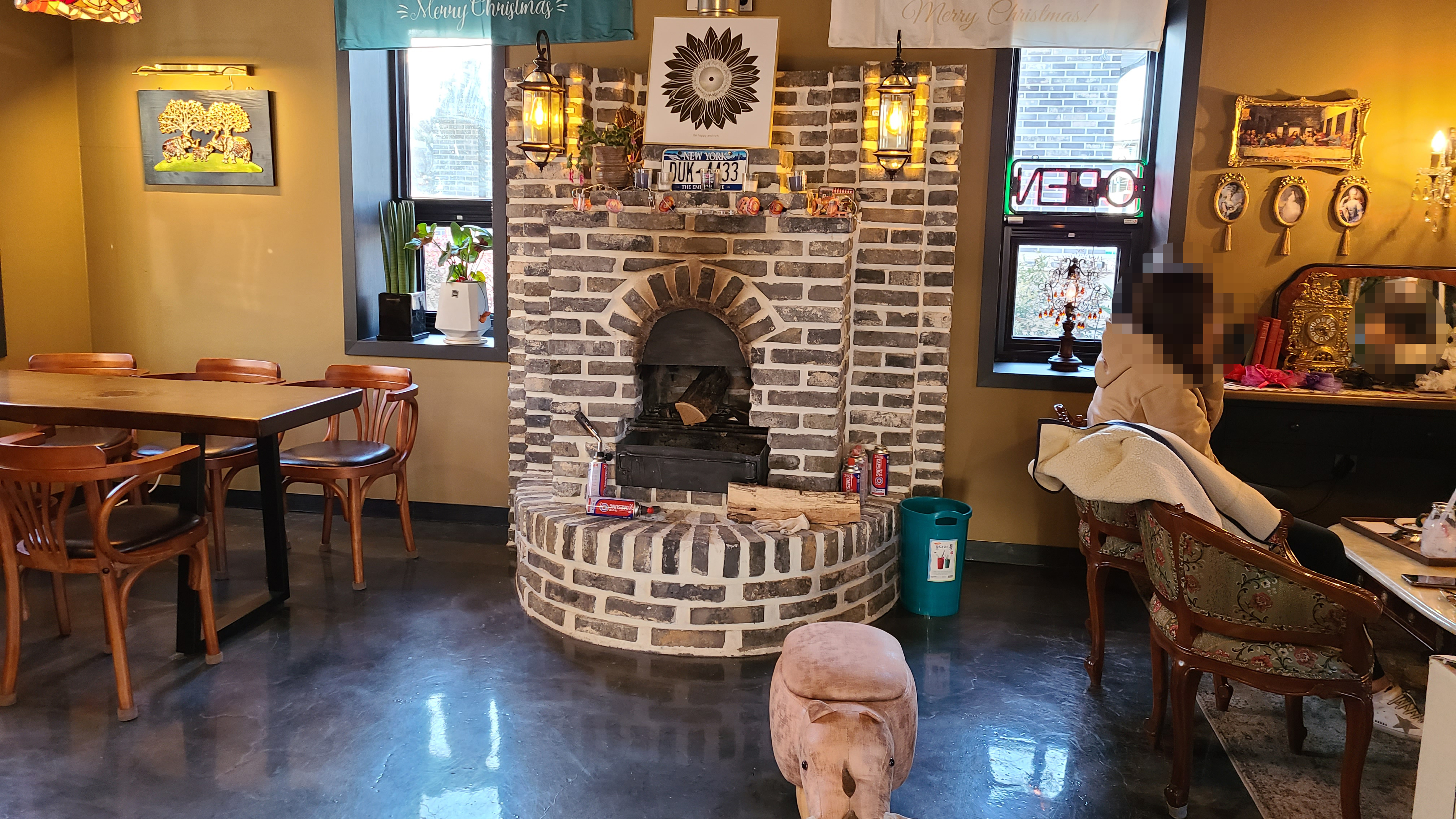 예쁜 벽난로와 화려한 조명까지 사장님의 애정이 가득 담긴 인테리어입니다.