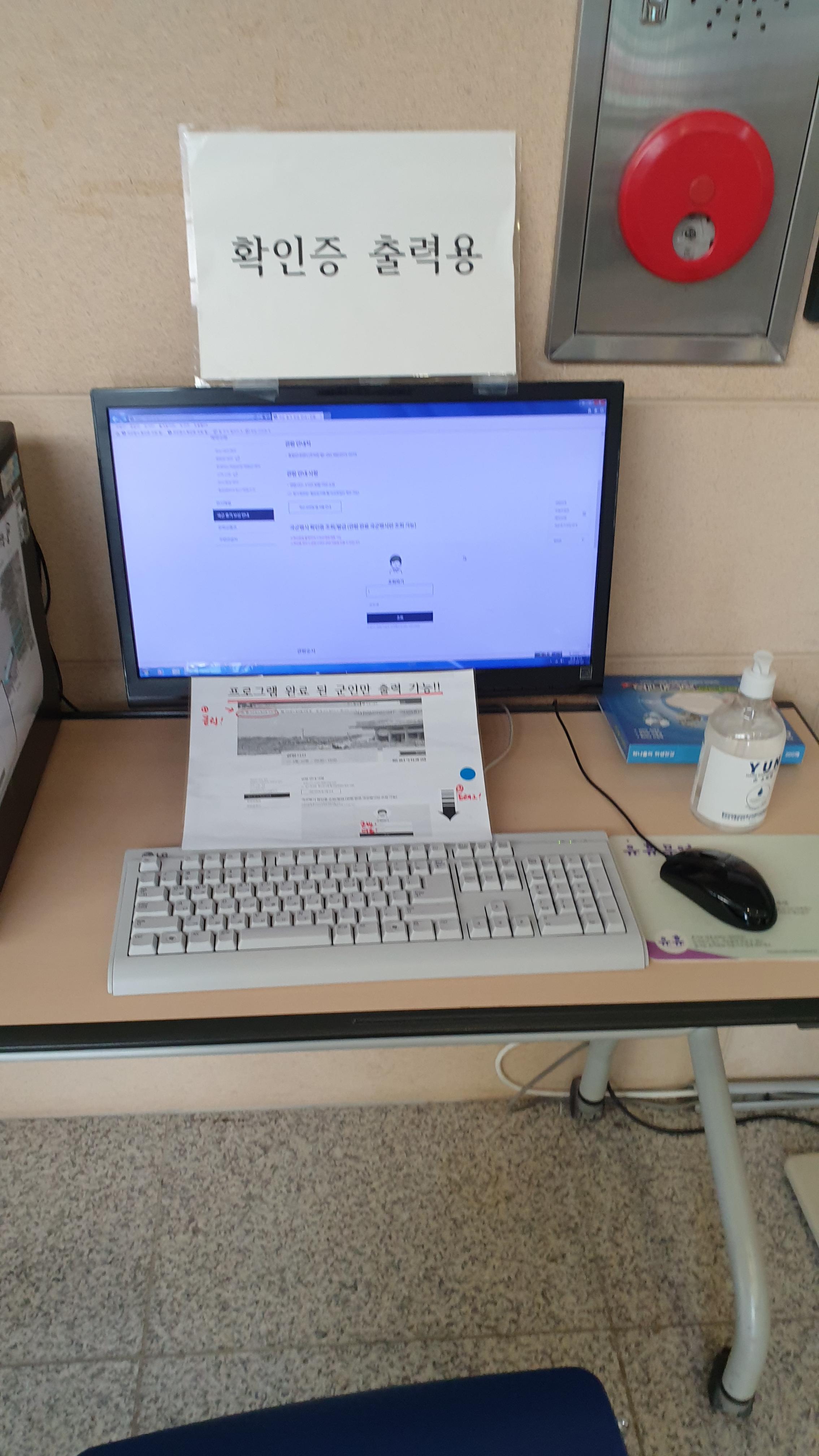 휴가증을 가지고 가지 않은 경우는 따로 안내를 받아 설치된 컴퓨터에서 확인증을 출력하면 됩니다.